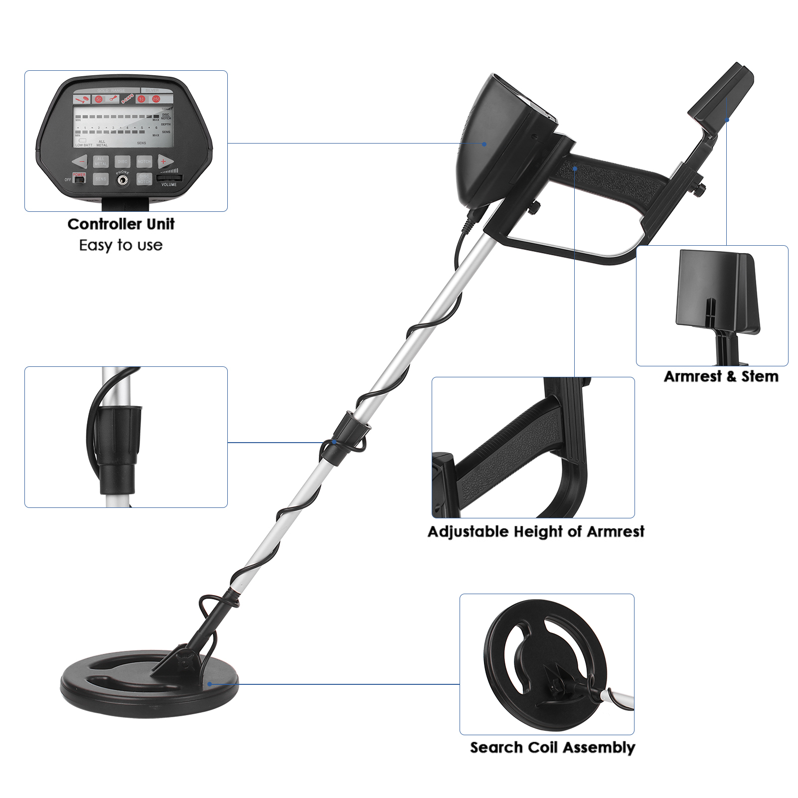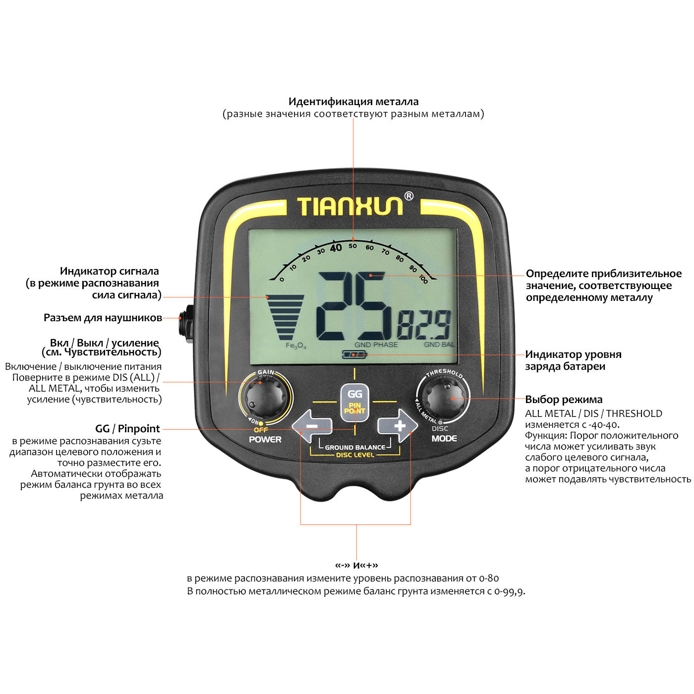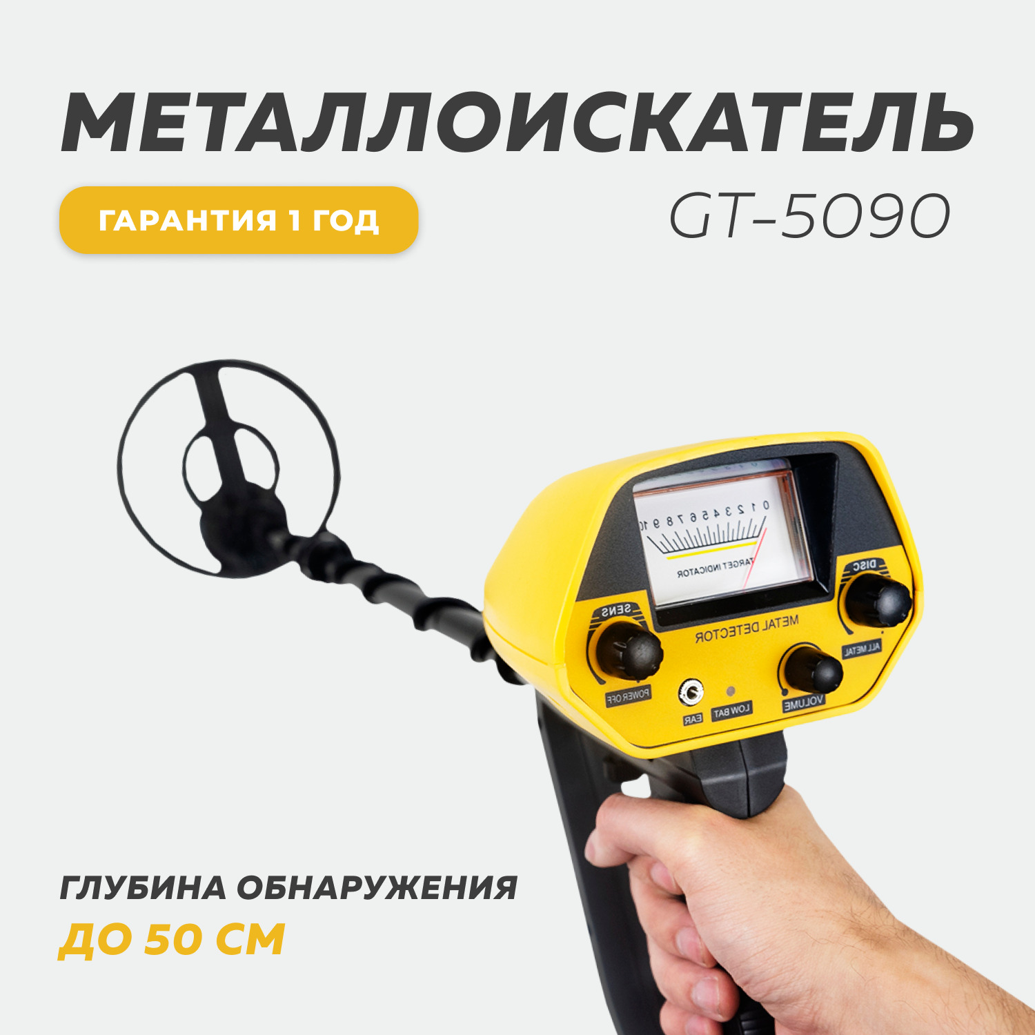 Металлоискатель GT-5090 грунтовый, глубинный для поиска монет, чермета (с дискриминацией)
