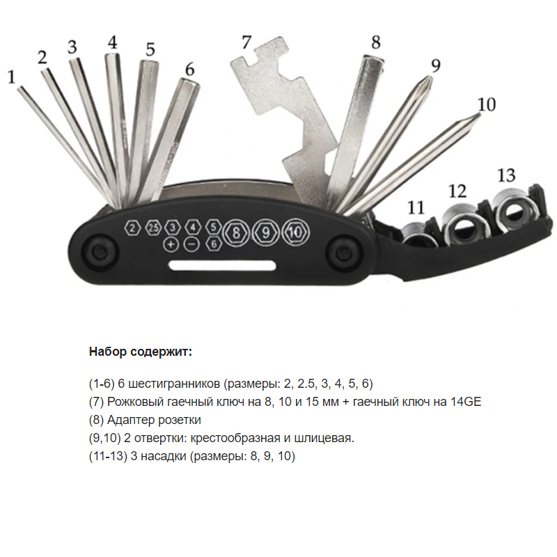 Мультитул универсальный 16 в 1 / Мультитул велосипедный