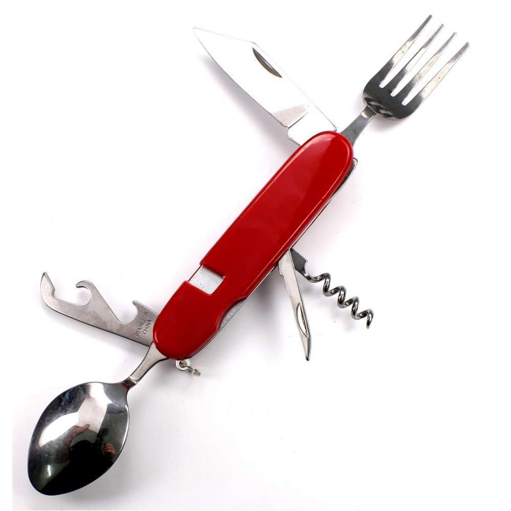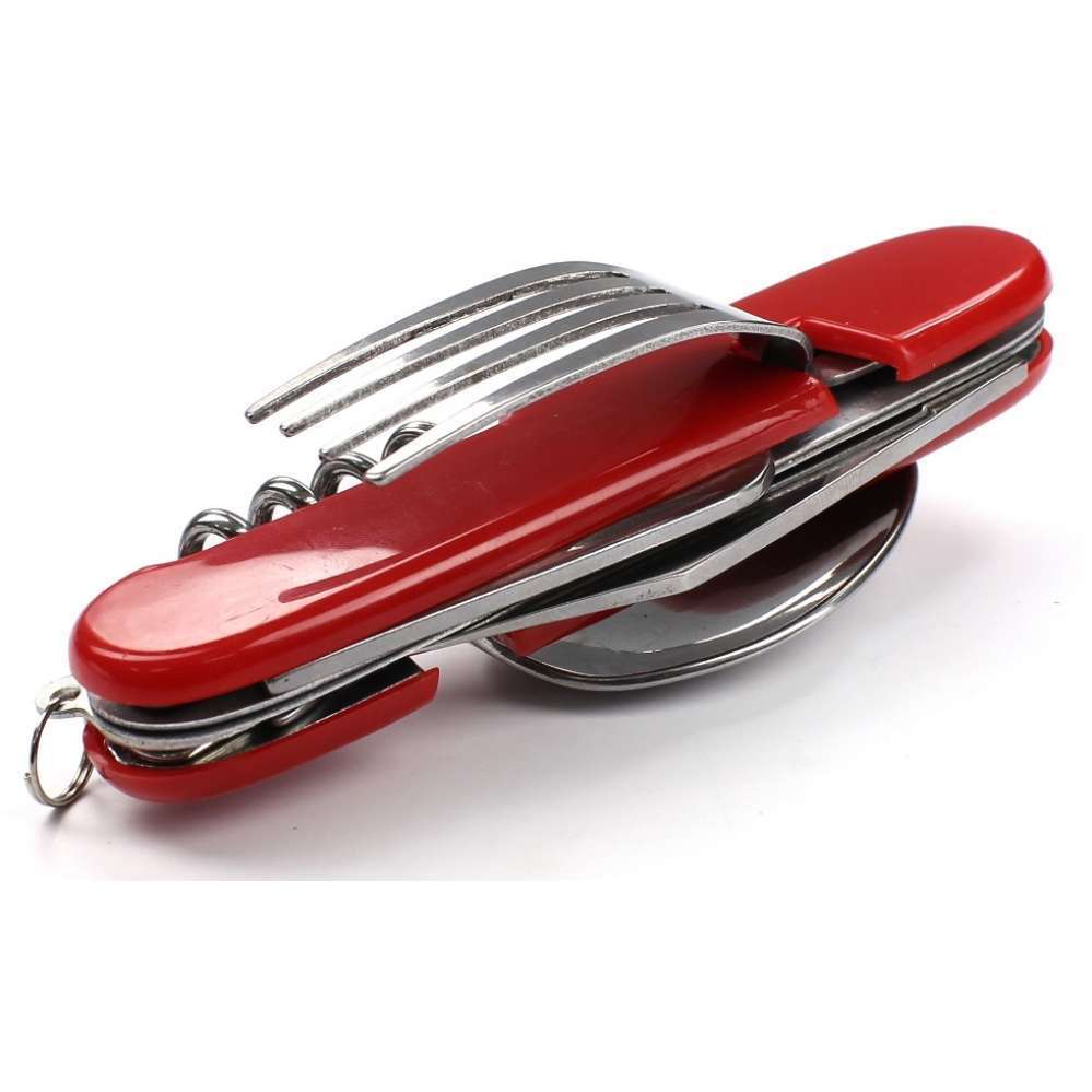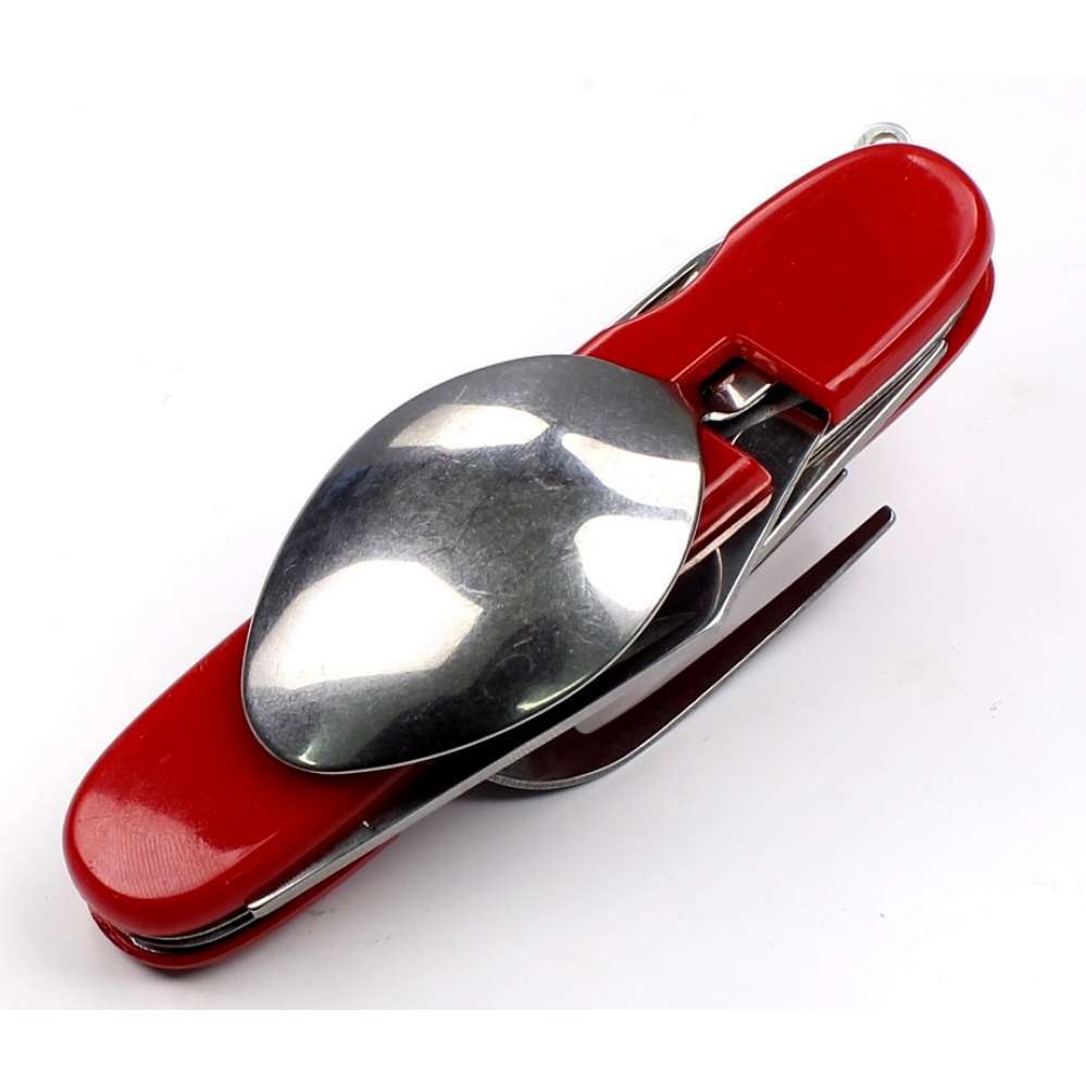 Мультитул походный, ложка-вилка, 6 инструментов, красный