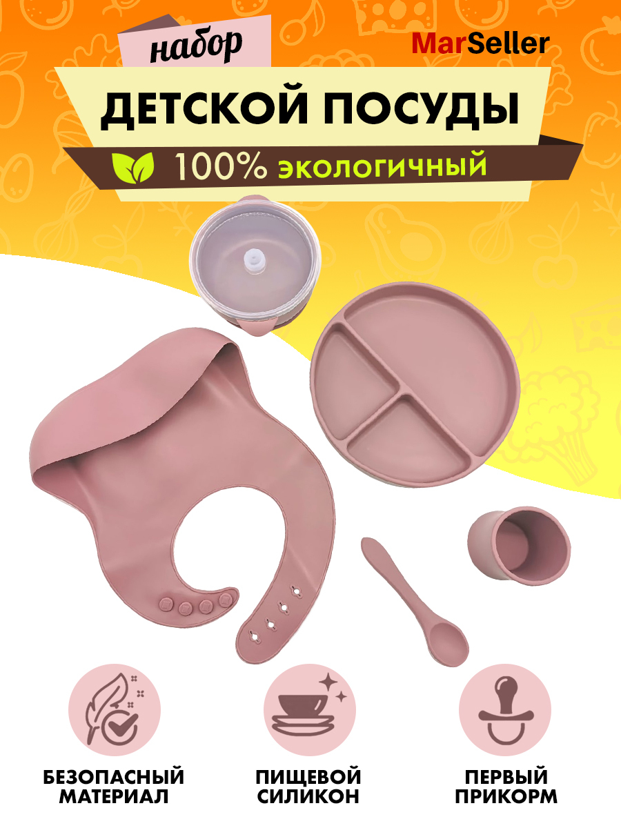 Набор детской посуды / посуды для малышей / набор для кормления / силиконовая посуда / на присоске