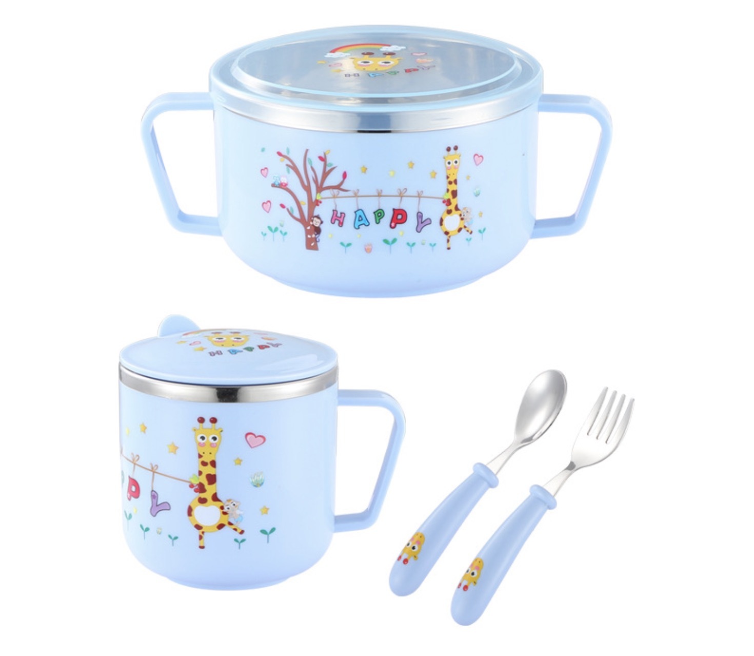 Набор детской посуды из бамбука/эко посуда бычок бежевый 5 предметов