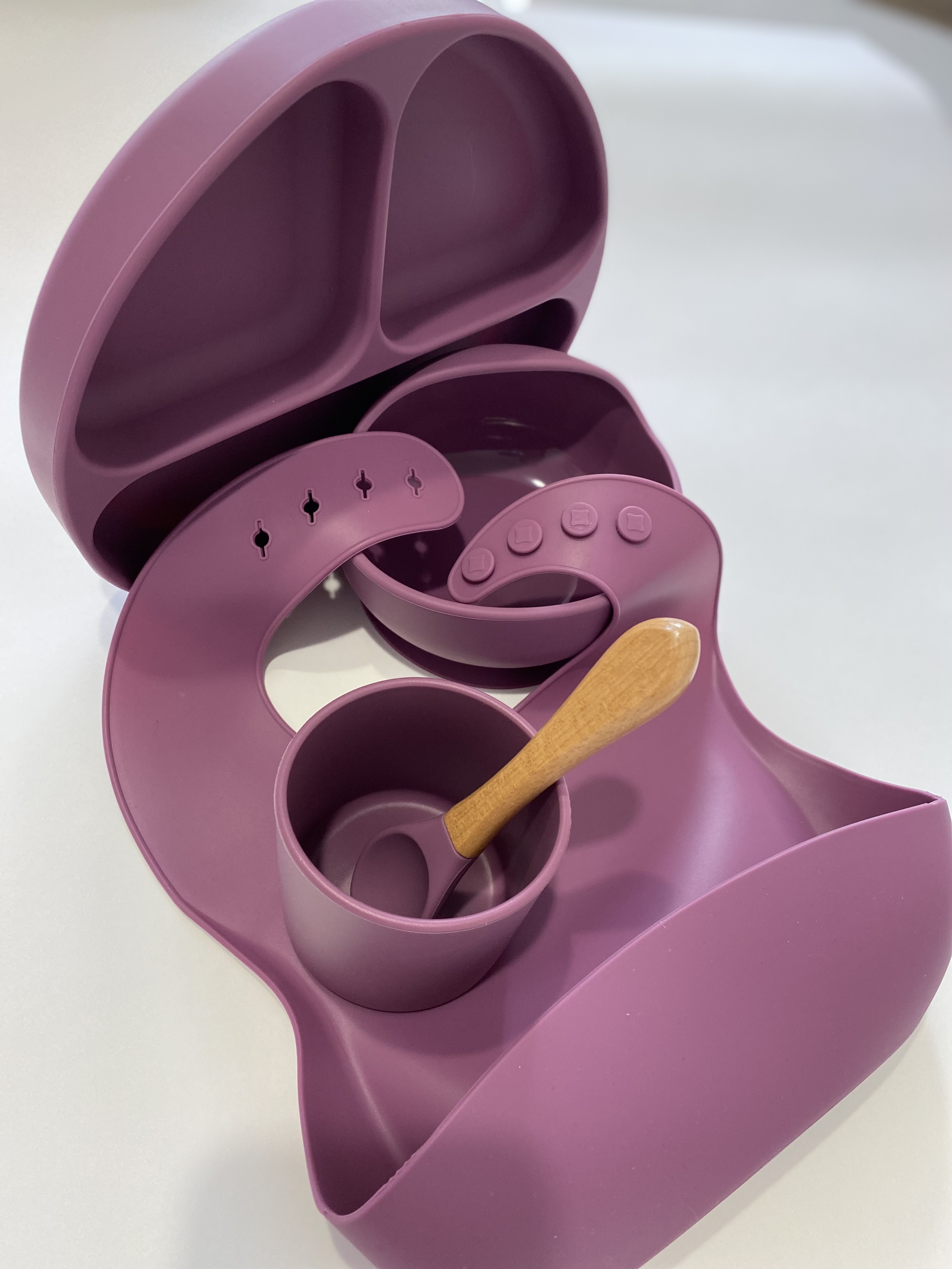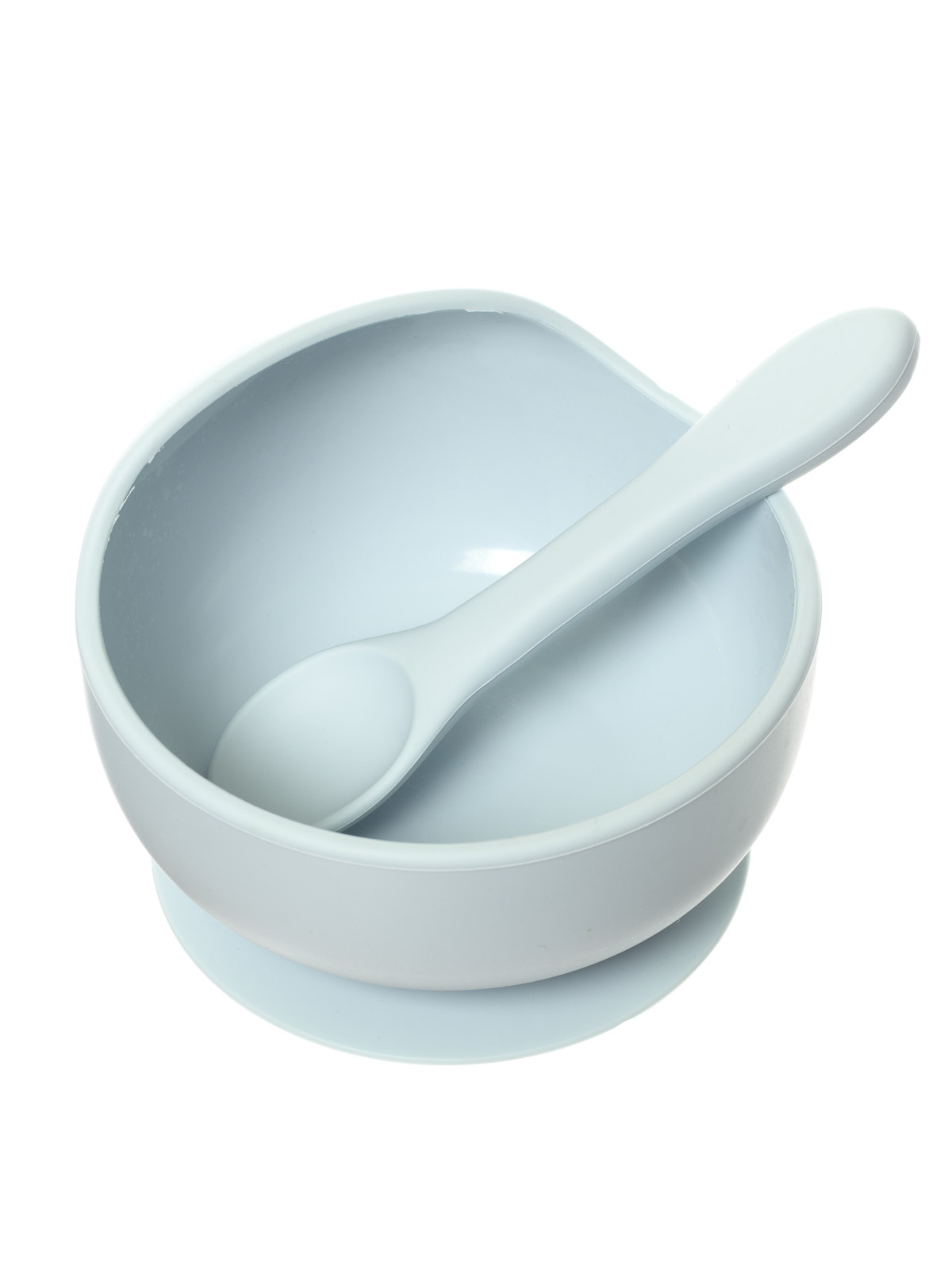 Тарелка на присоске детская 400 мл. Силиконовая тарелка с ложкой и вилкой, цвет: кофе с молоком
