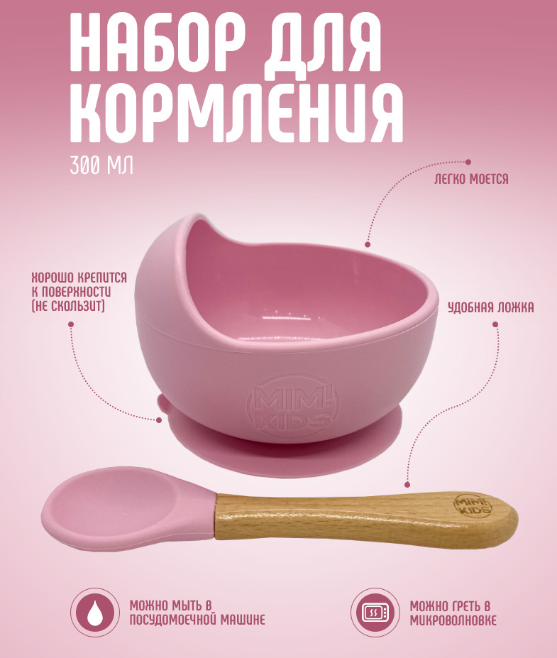Тарелка на присоске детская 300 мл. Силиконовая тарелка с ложкой, цвет: персик