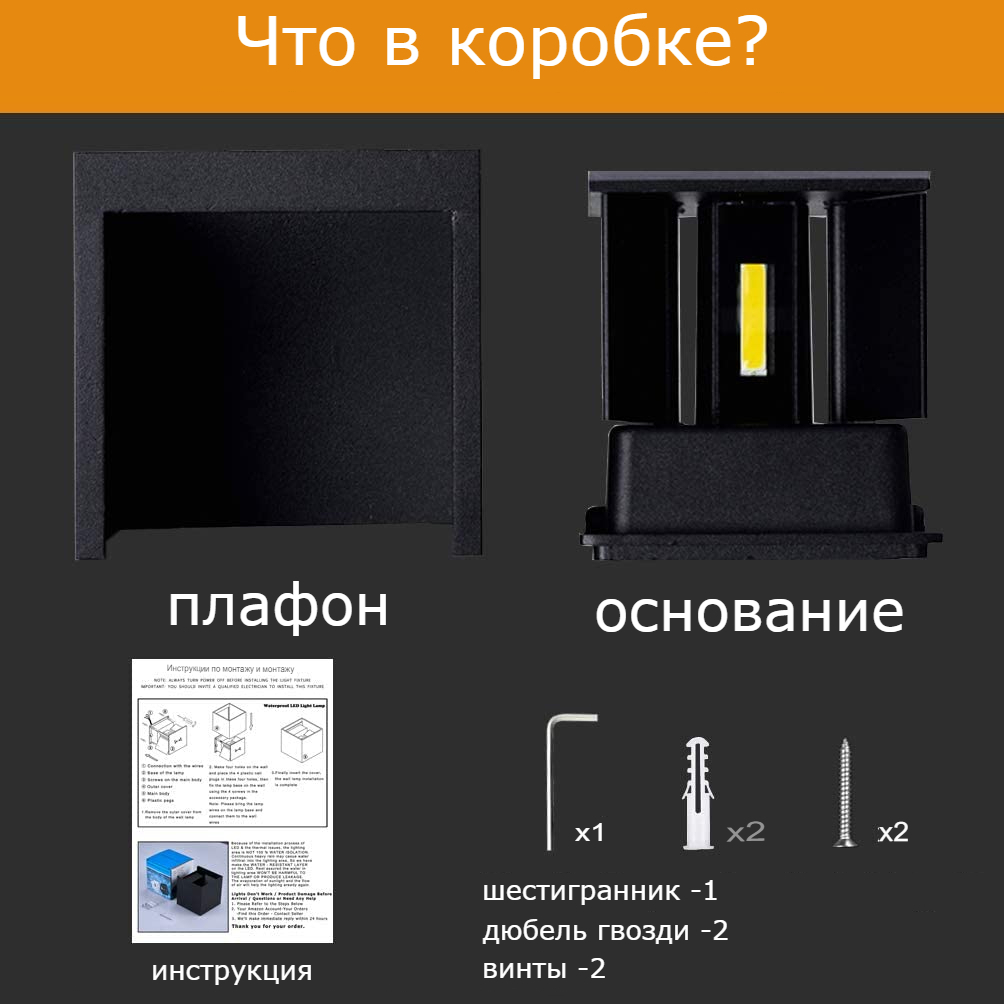 Настенный светильник Черный, теплый белый свет, 12 Вт
