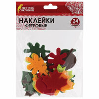Наклейки из фетра листья, 24 штуки, ассорти, остров сокровищ, 661479