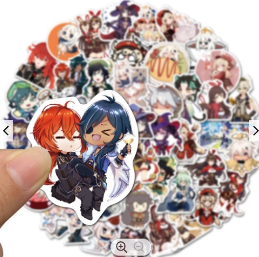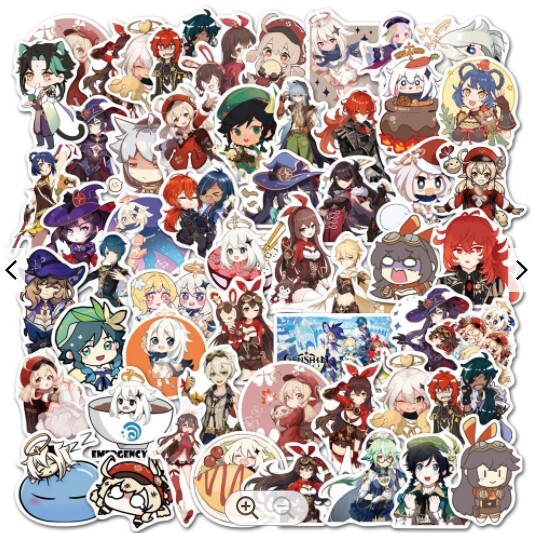 Наклейки Геншин Импакт 100шт 6-8 см, набор стикеров Genshin Impact, наклейки аниме
