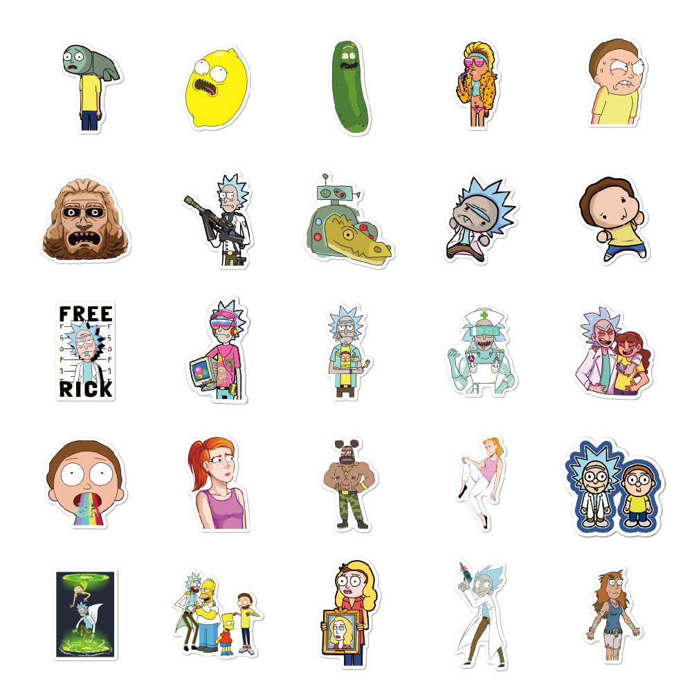 Наклейки Рик и Морти водостойкие 100шт (3-6см)