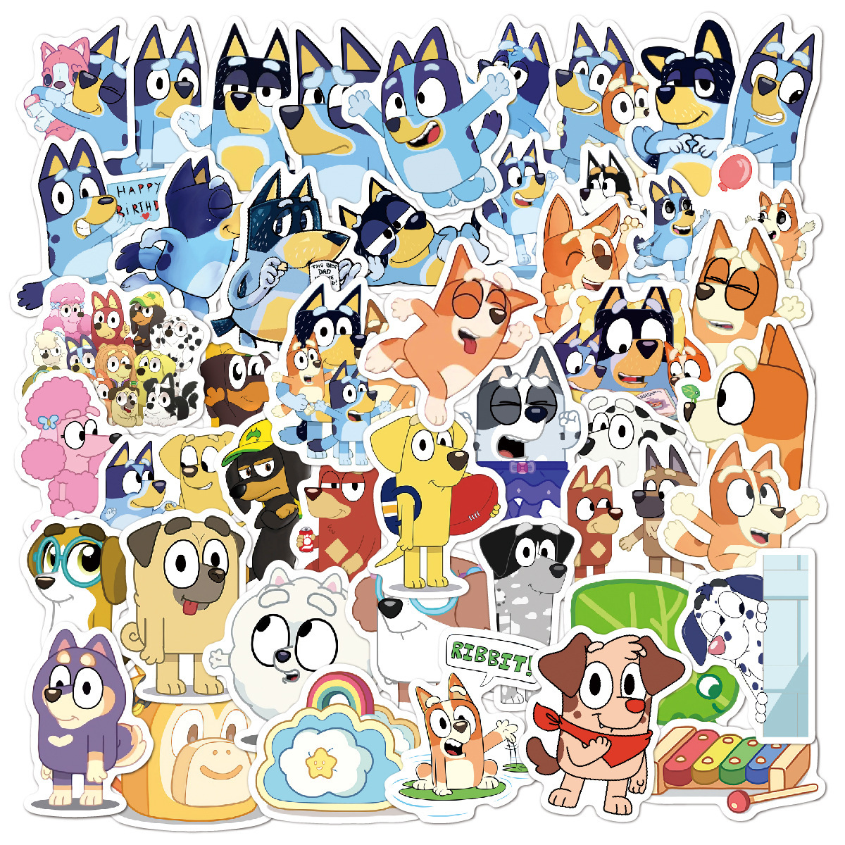 Наклейки Блуи / Bluey водостойкие 52шт (4-6см)