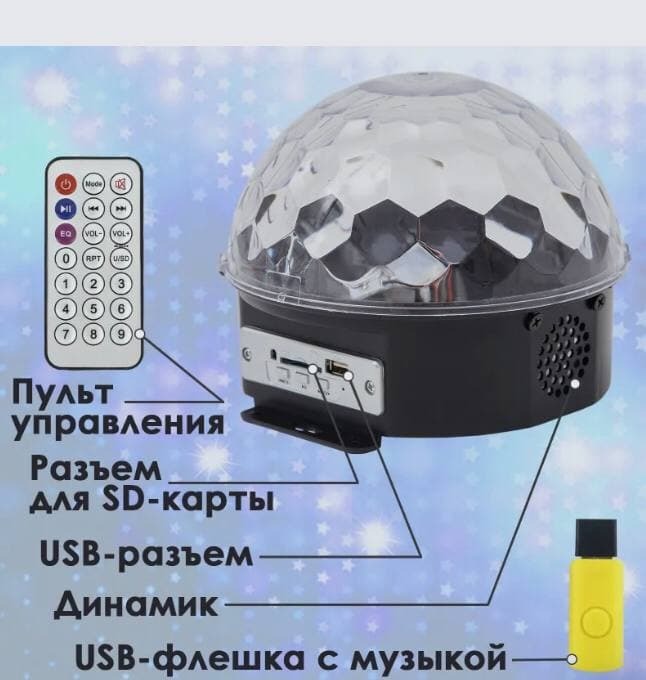 Светодиодный диско-шар LED Crystal Magic Ball Light с флешкой и пультом
