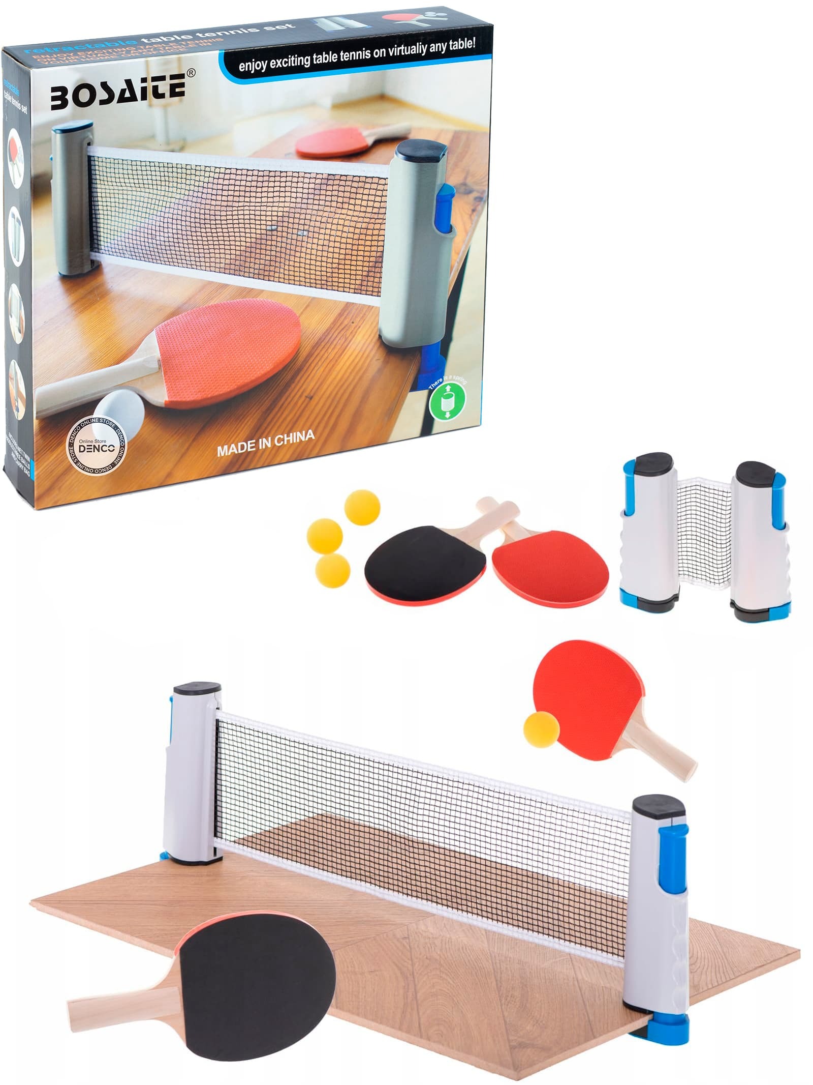 Набор Bosaite для настольного тенниса / пинг-понга Ракетки с 3 мячами и с сеткой 44876