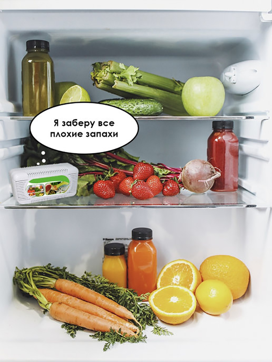 Освежитель для холодильника, формула 2в1 дезинфицирует и освежает/древесный уголь