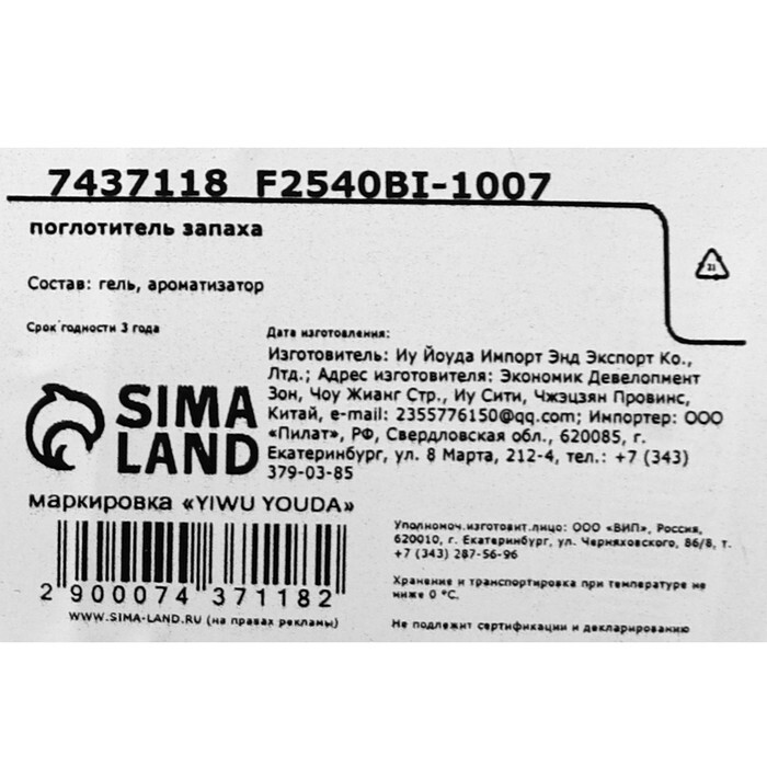 Поглотитель запаха для холодильника, 10,5-4 см/освежитель воздуха/средства для бытовой техники/