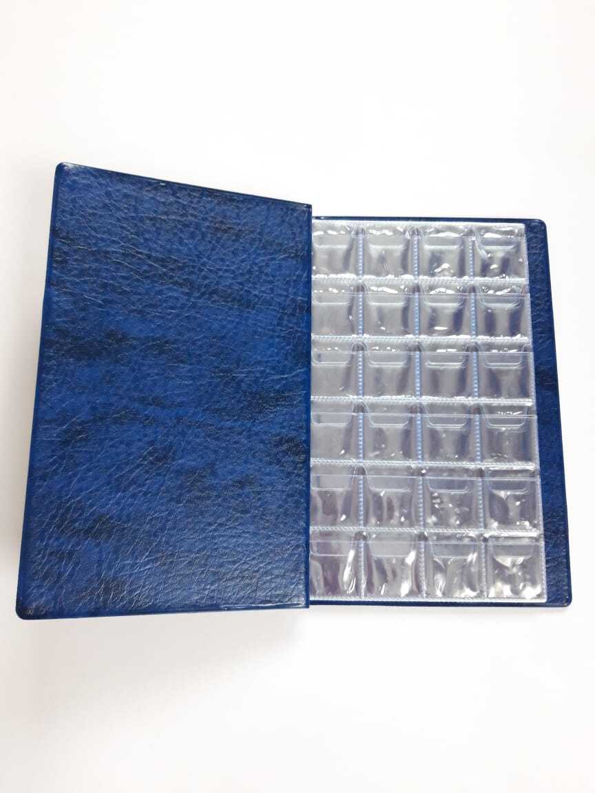 Монетник на 192 ячейки кожзам синий / Альбом для монет