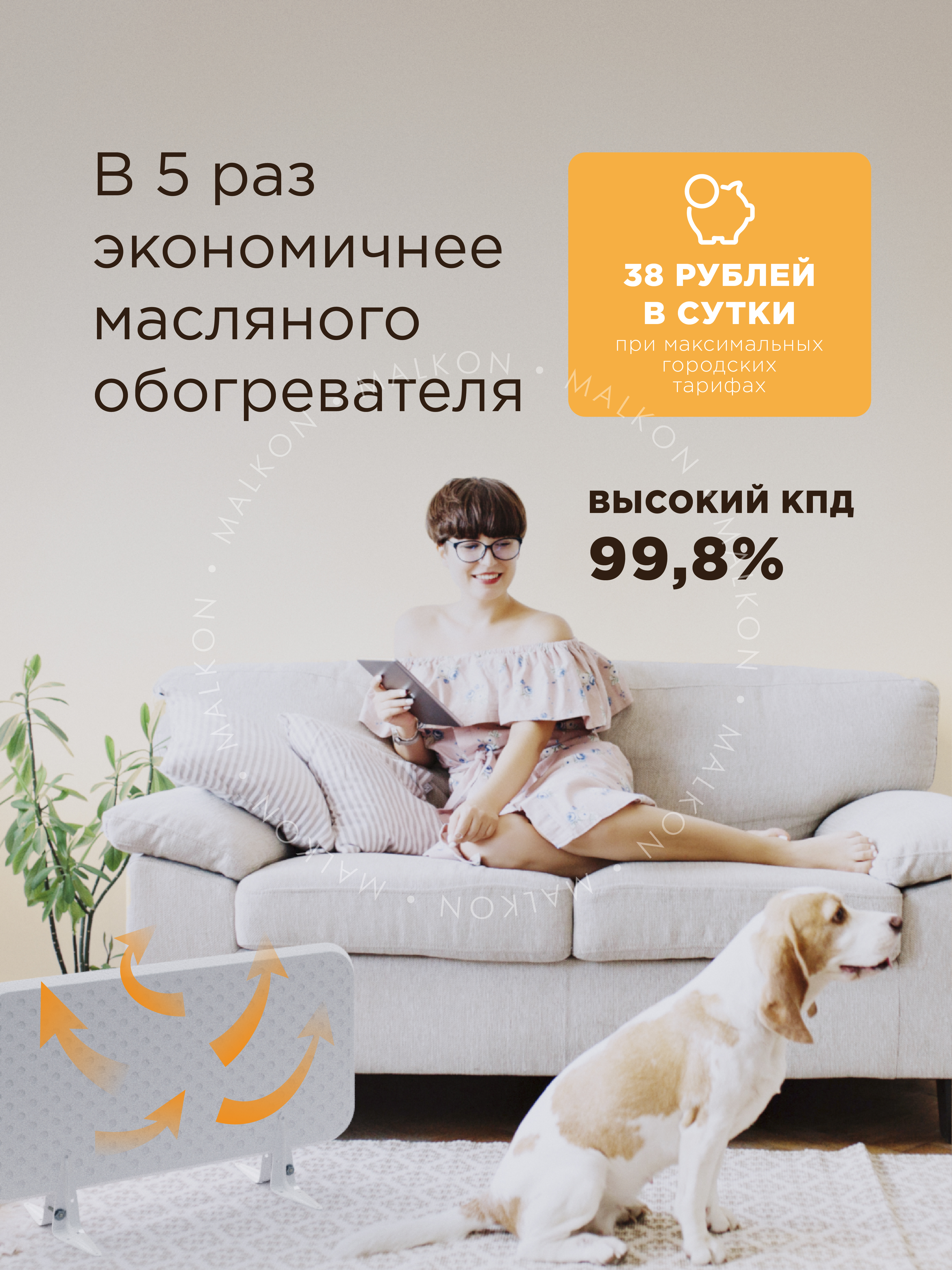 Обогреватель кварцевый белый экономичный / Обогреватель
