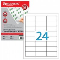 Этикетка самоклеящаяся Brauberg 127519, А4, 24 этикетки 64,6х33,8 мм, белая, 70 г/м2, 50 л.