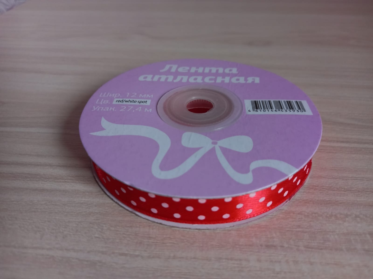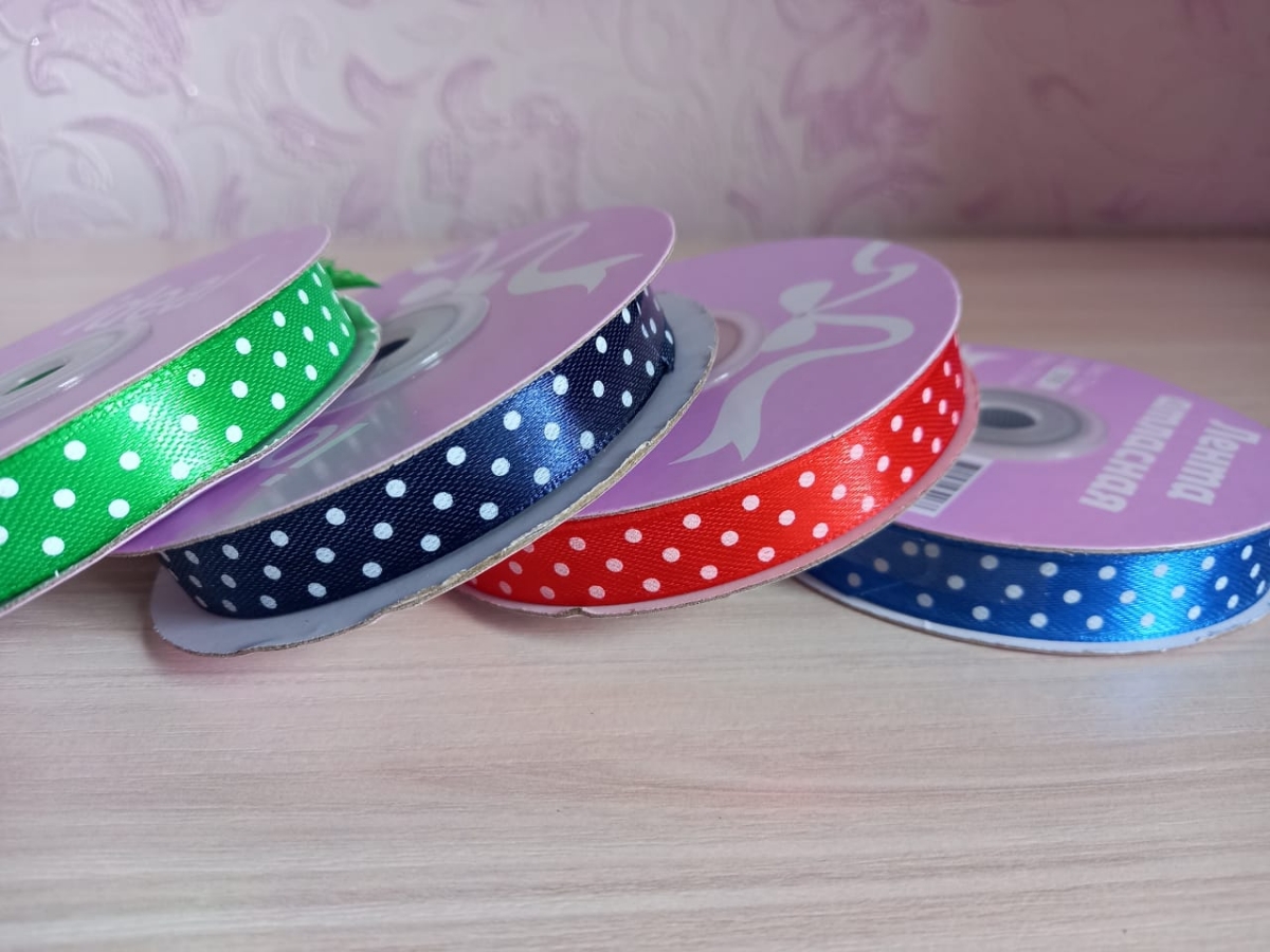 Лента атласная / лента для праздника в горошек / лента упаковочная 25 мм уп. 27 м