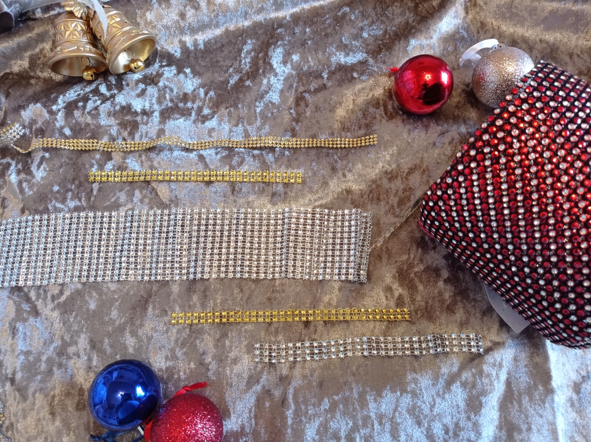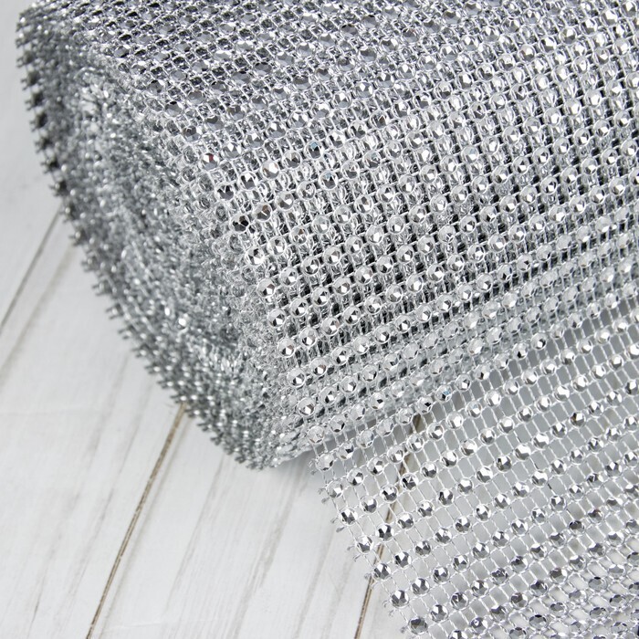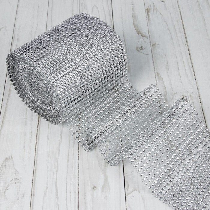 Лента с имитацией страз, 12 см, 9 м, цвет серебряный