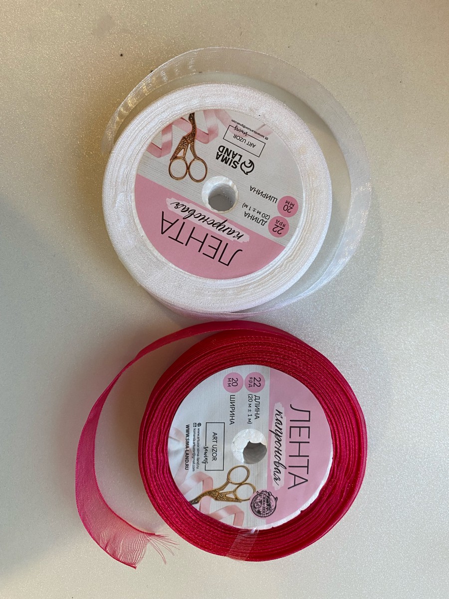 Атласные ленты 25мм ширина Набор №1, 4 цвета по 5 метров