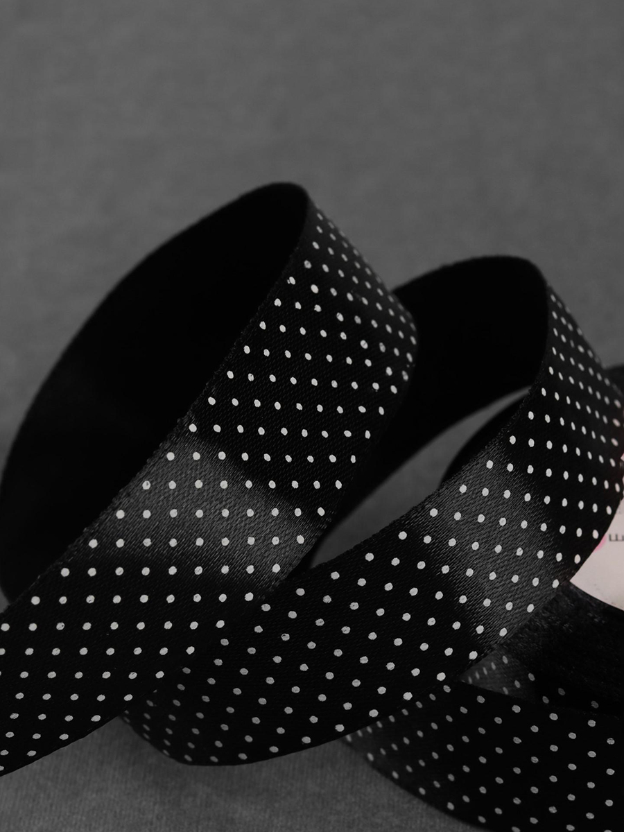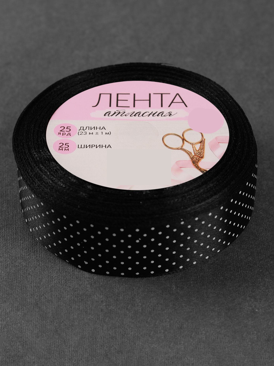 Лента атласная "Горошек", 25 мм х 23 м, цвет черный