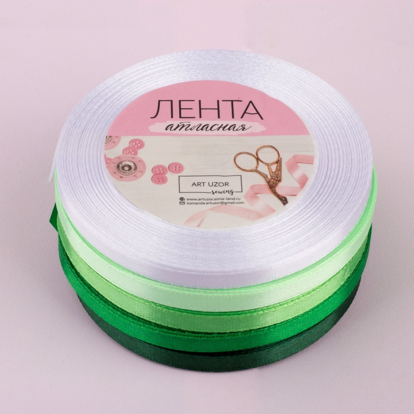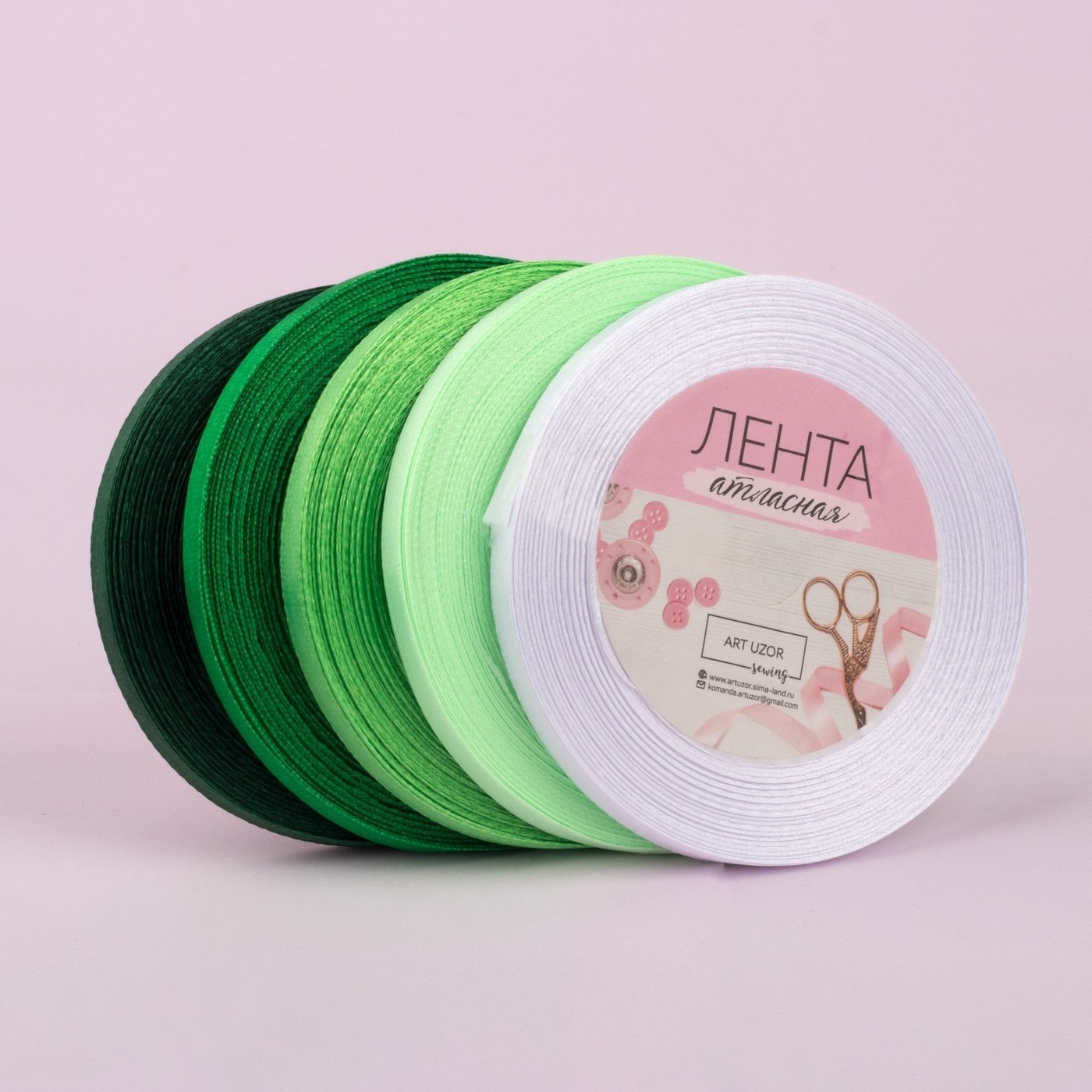Лента атласная набор атласных лент для рукоделия, 6мм, 23м, Зеленый спектр