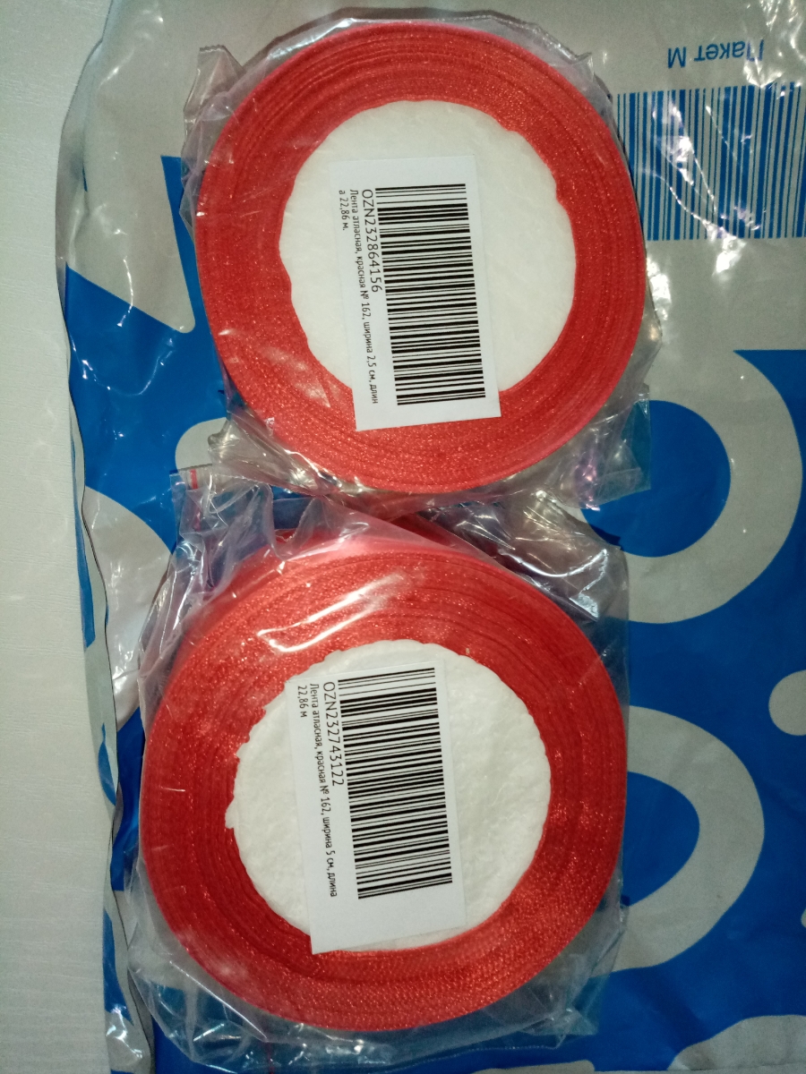 Лента атласная синего цвета № 40, шириной 2,5 см, длиной 22,85 м.