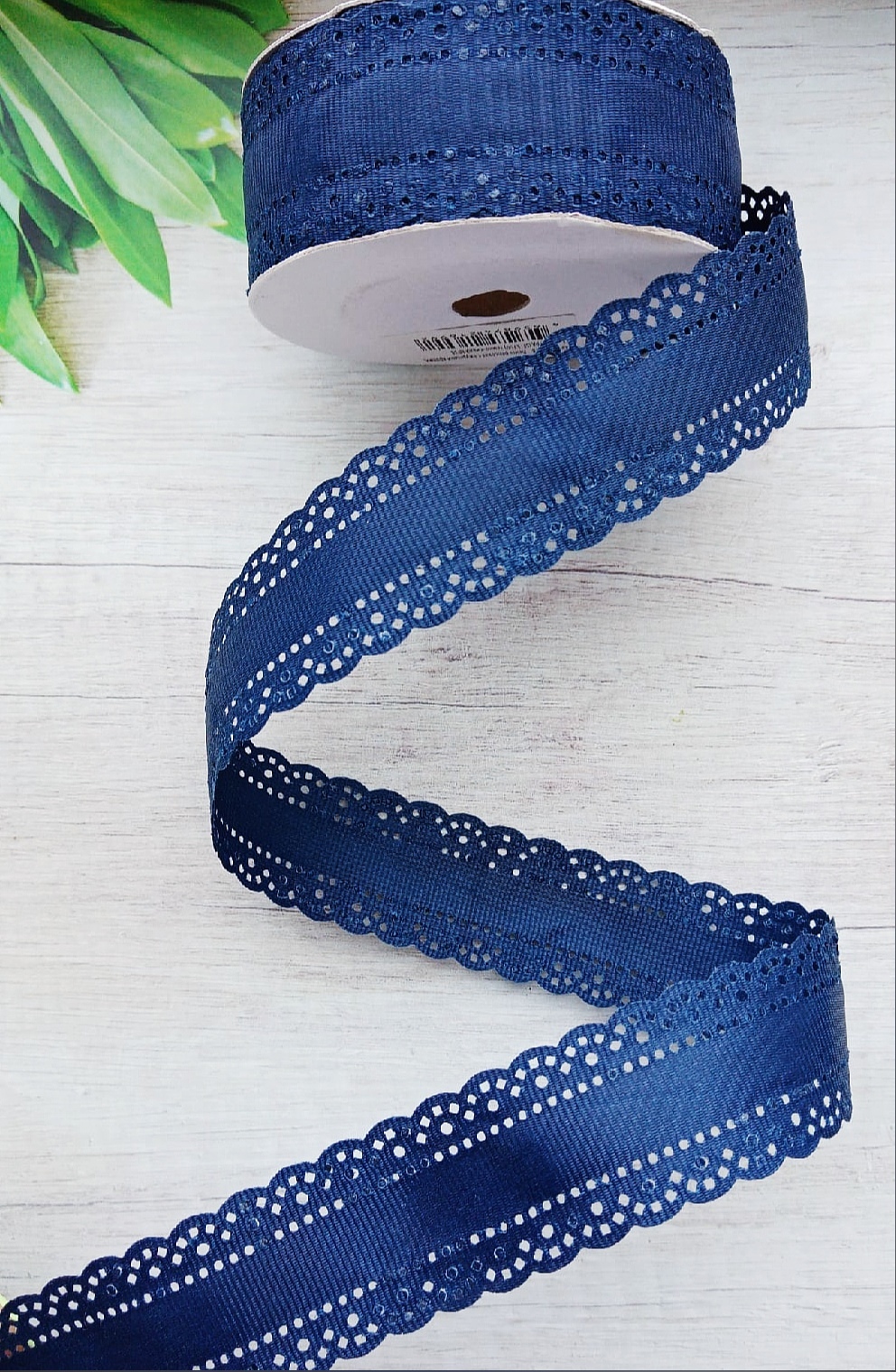 Лента репсовая с ажурными краями, цвет темно-синий, ширина - 3 cм, длина - 5 м.