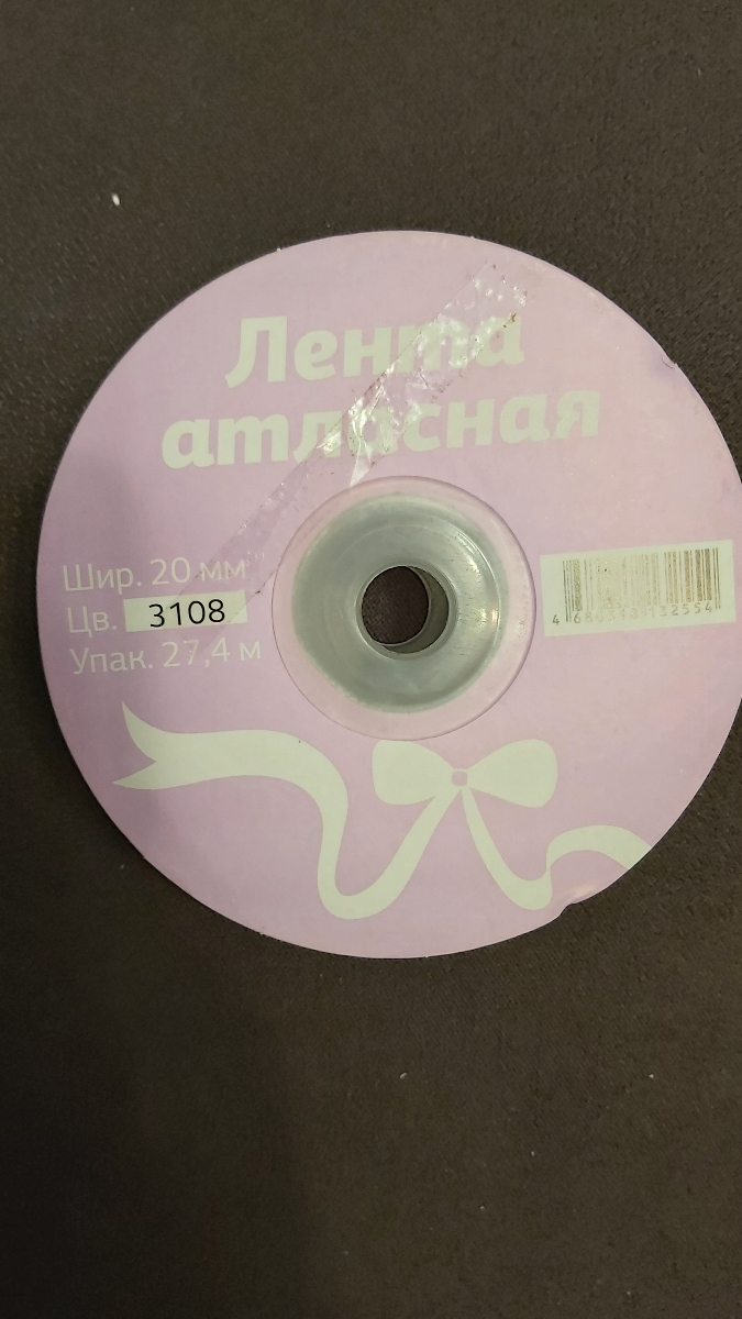 Лента атласная, белая № 01, ширина 0,3 см, длина 82,3 м.