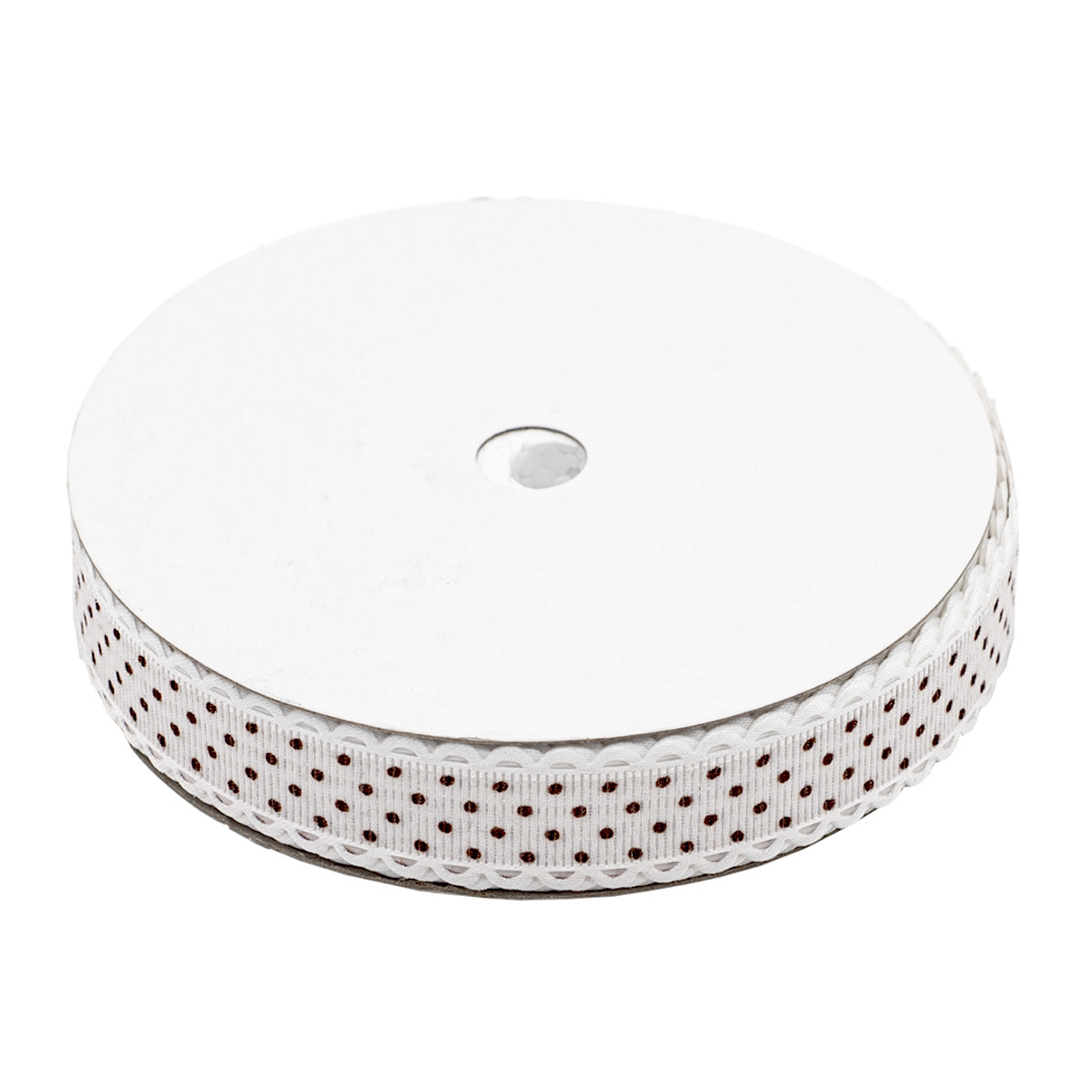 Лента декоративная Горох, 7708202, белый, коричневый, 20 мм х 25 м