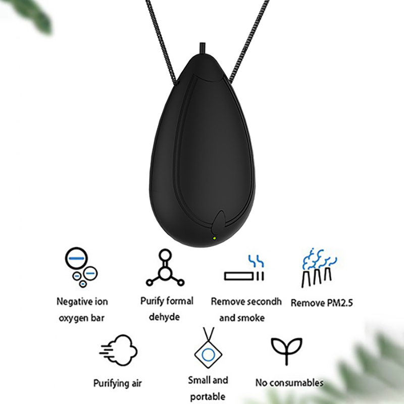 Очиститель воздуха 2 шт 200 мАч отрицательное ионное ожерелье висит шейный черный, черный