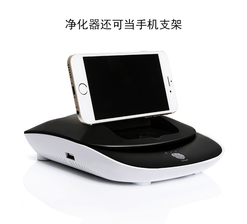 Очиститель воздуха универсальный черный с подставкой под мобильный телефон, черный
