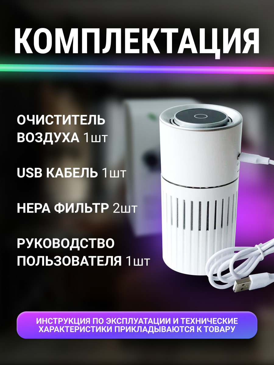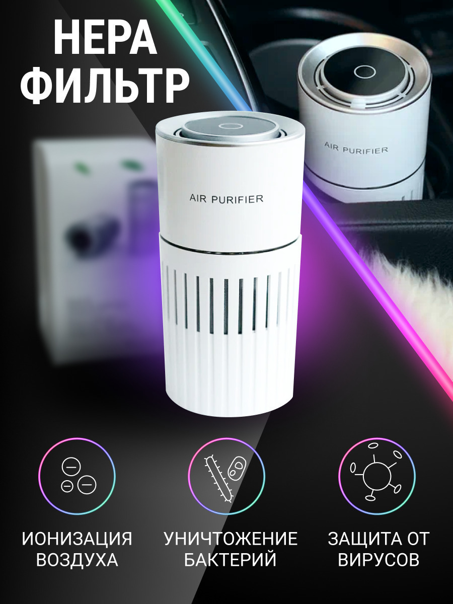 Очиститель воздуха универсальный белый с подставкой под мобильный телефон, белый