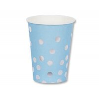 Бумажные стаканчики одноразовые 210 мл голубые в серебряный горошек, 6 шт