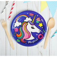 Одноразовые тарелки Набор бумажных тарелок Единорог 18 см (10шт)