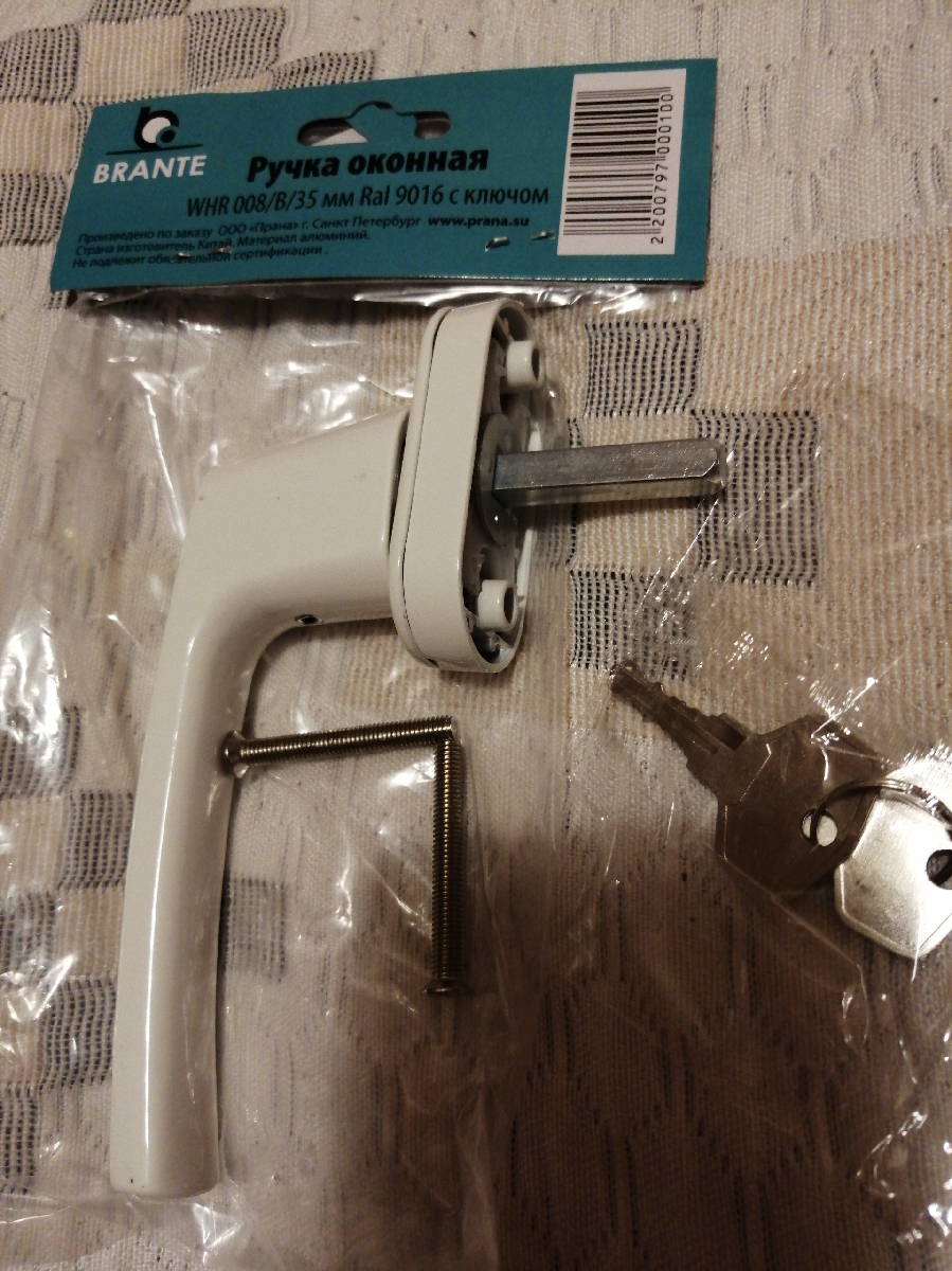 Ручка оконная, металлическая (белая)
