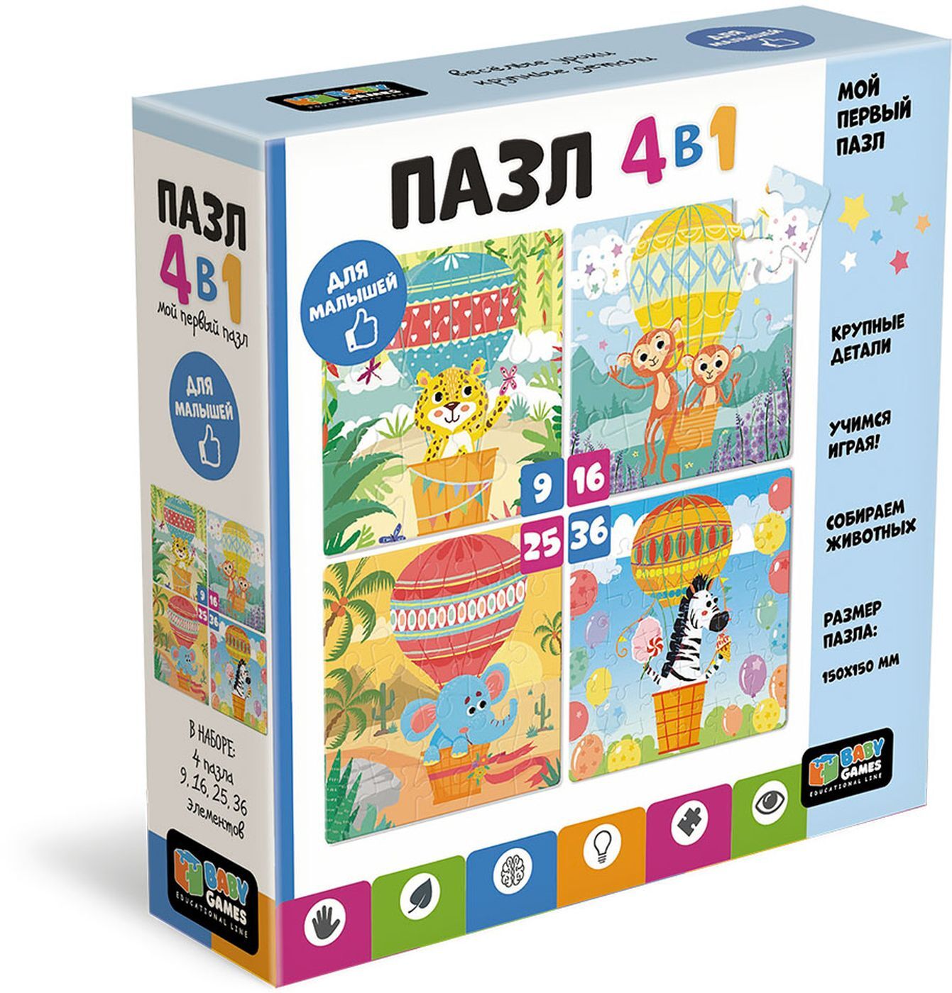 Набор пазлов Оригами 4 в 1 Baby Games "На большом воздушном шаре", 9-16-25-36 элементов, 06839
