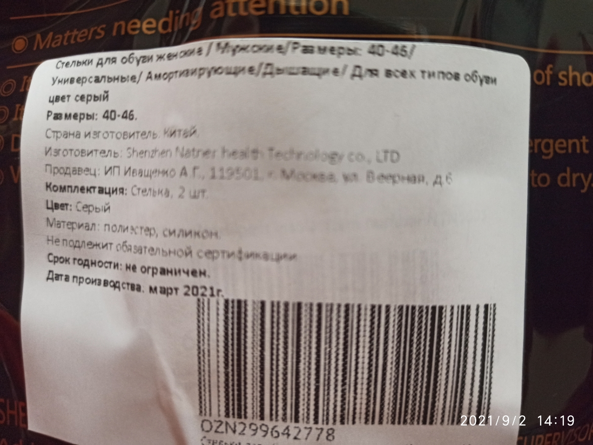 Стельки ортопедические Talus 31Е Зима, размер 45
