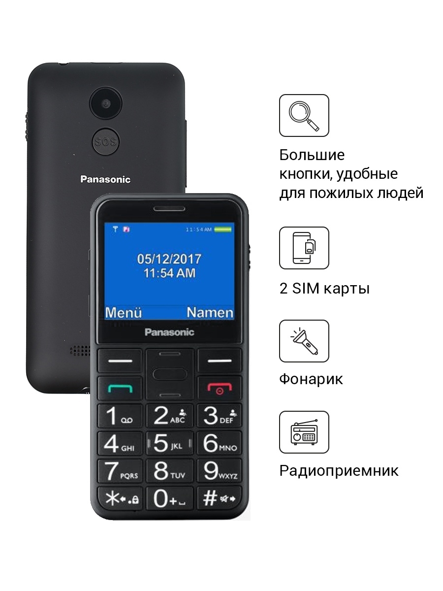 Телефон проводной Panasonic KX-TS2365RUB, громкая связь, экран, черный