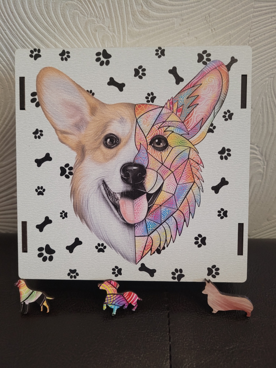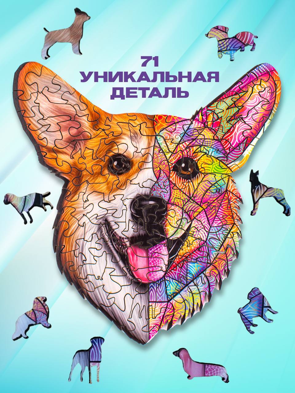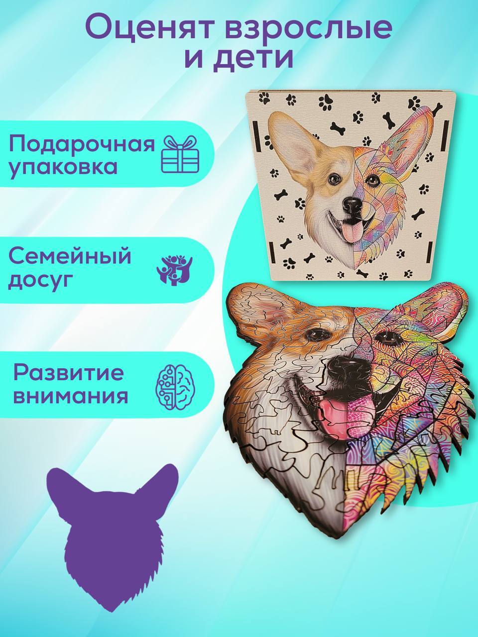 Пазл деревянный фигурный для детей и взрослых Корги Пазлы в коробке