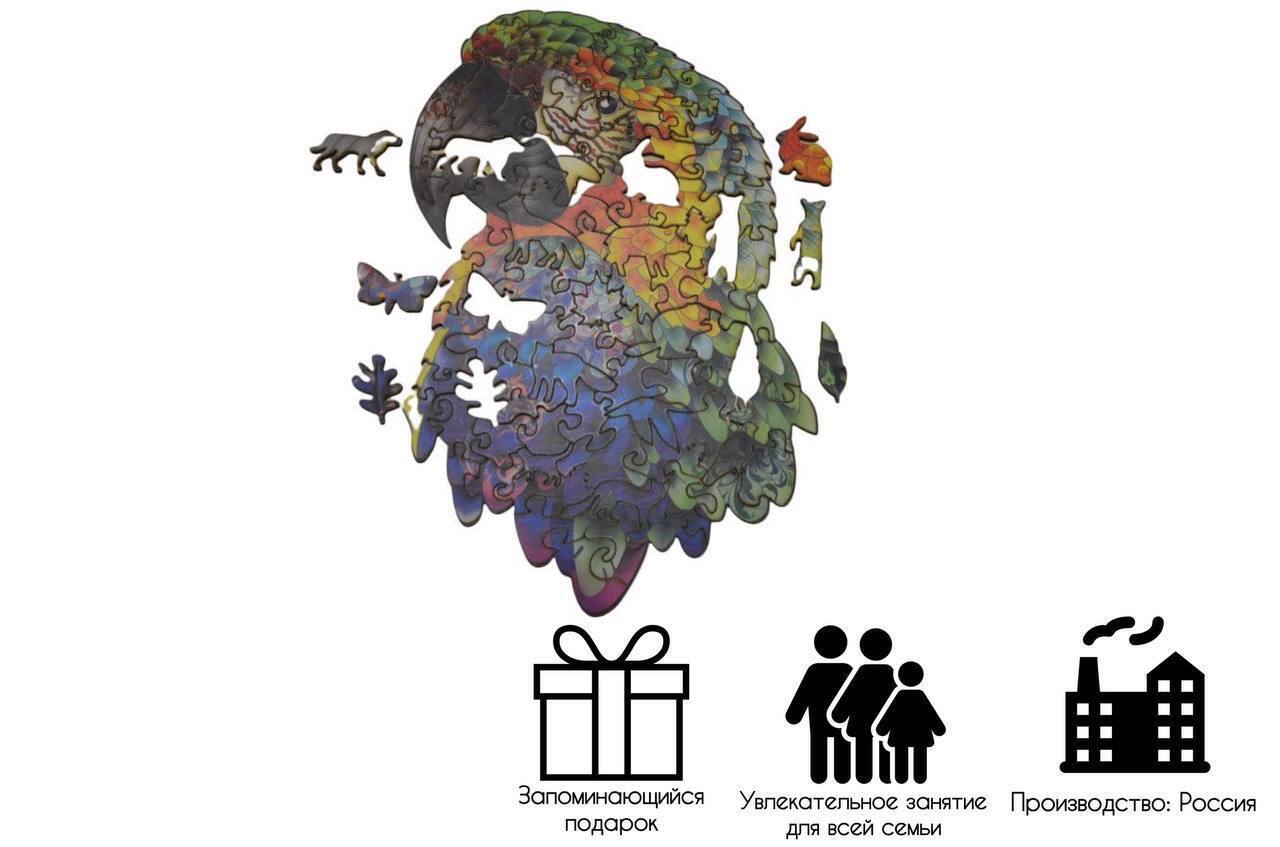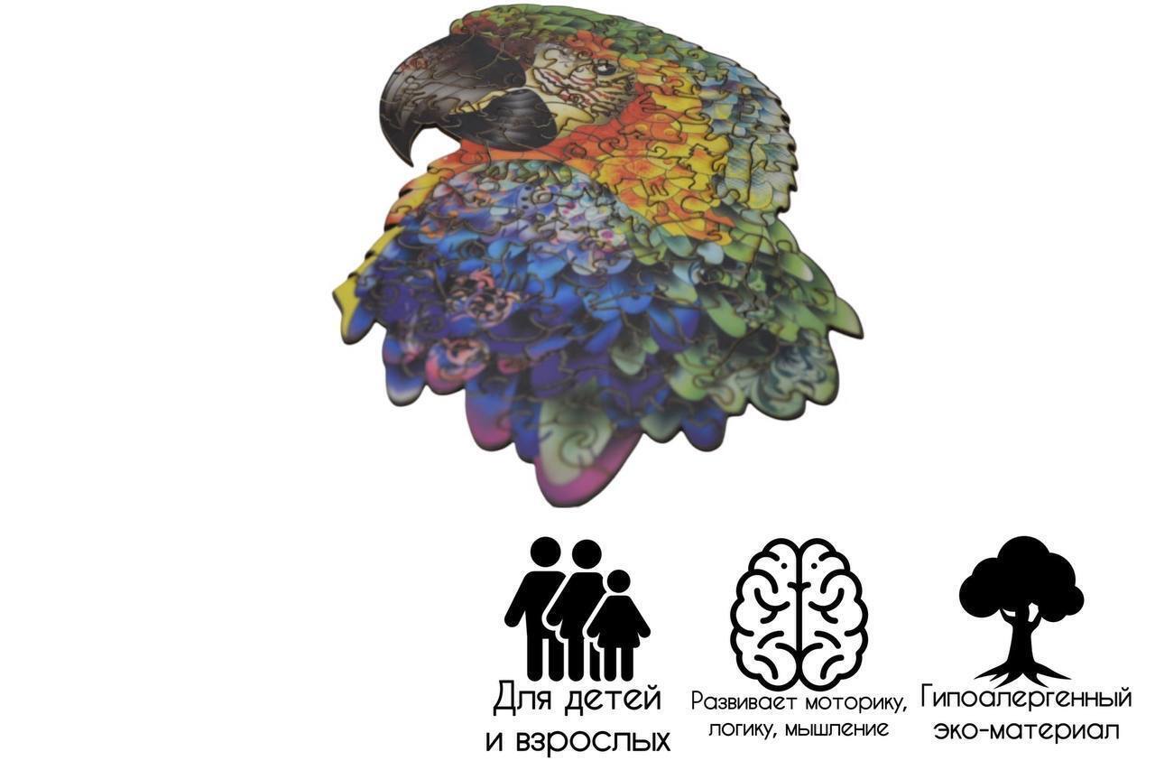 Деревянный пазл-головоломка для взрослых и детей "Тукан", фигурный пазл, подарочная упаковка