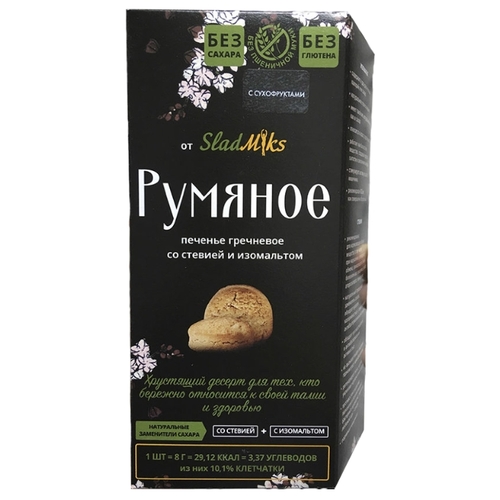 Печенье Slad Miks Румяное сдобное гречневое на изомальте и стевии с сухофруктами, 200 г
