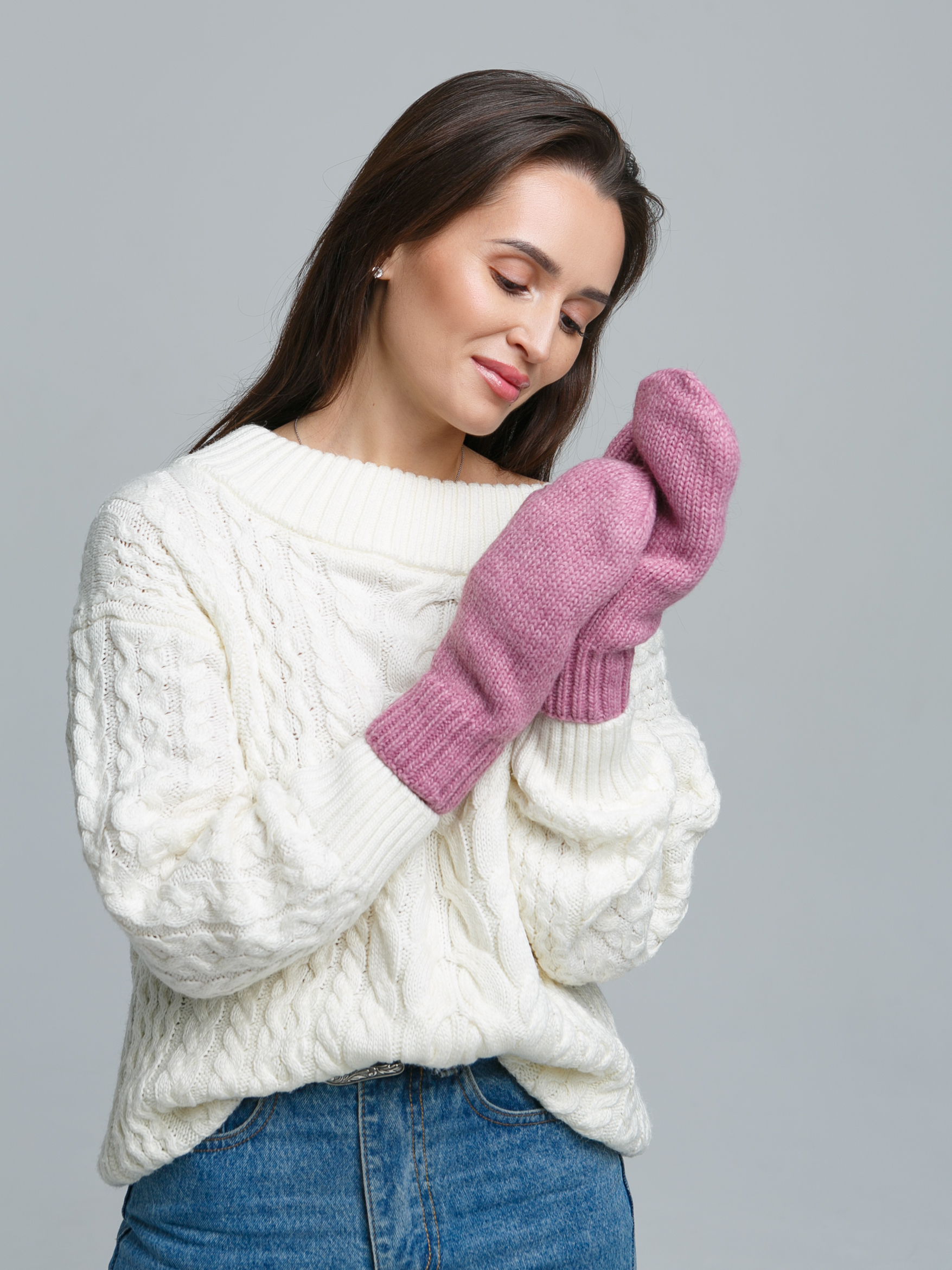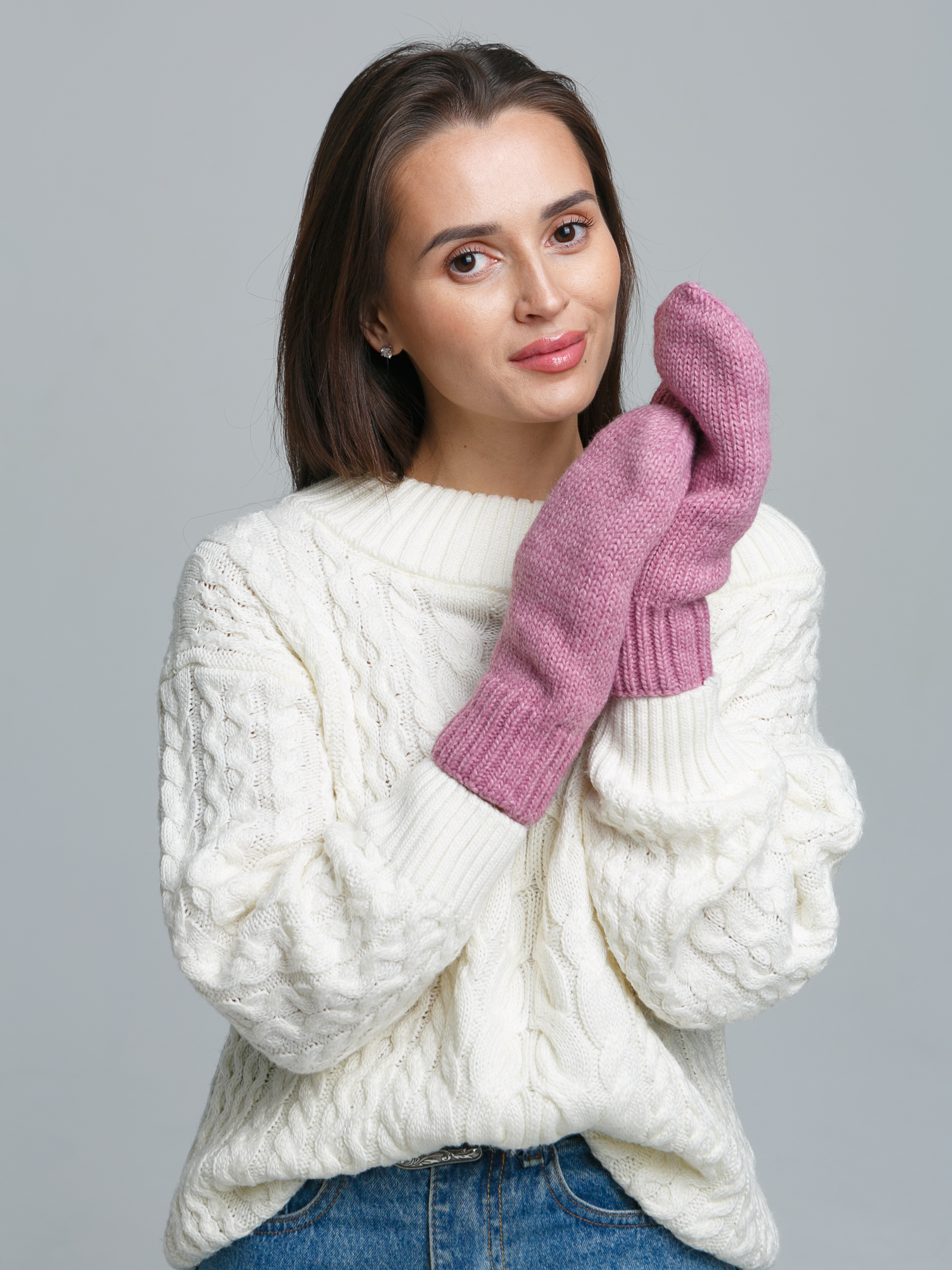 Варежки женские трикотажные/женские зимние варежки/женские зимние варежки однотонные без рисунка/варежки серые