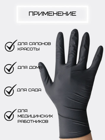 Перчатки антибактериальные, 100, M, Нитрил, Винил, черный