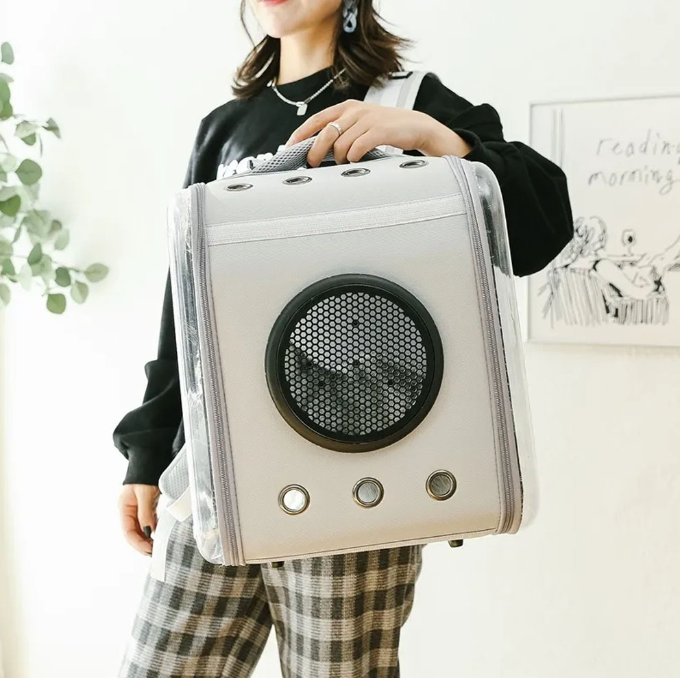 Рюкзак переноска с анатомической спинкой и прозрачным окном-иллюминатором для кошек и собак