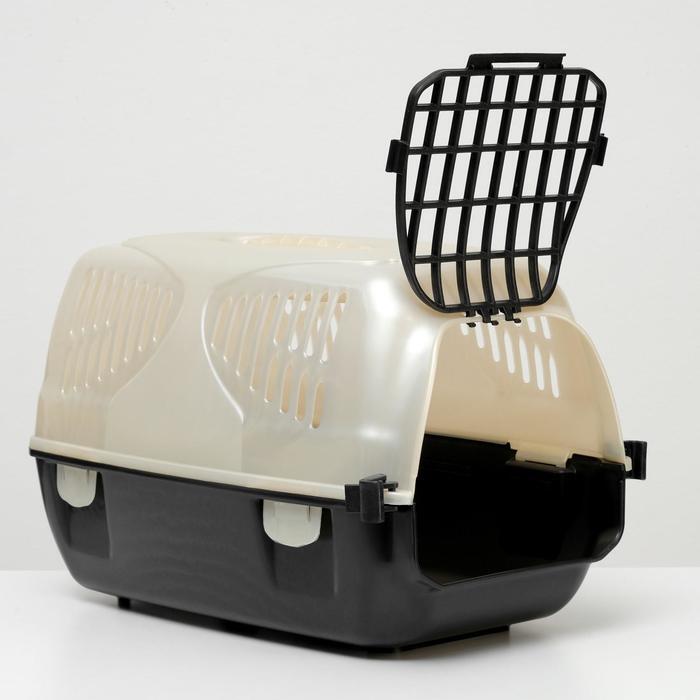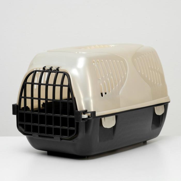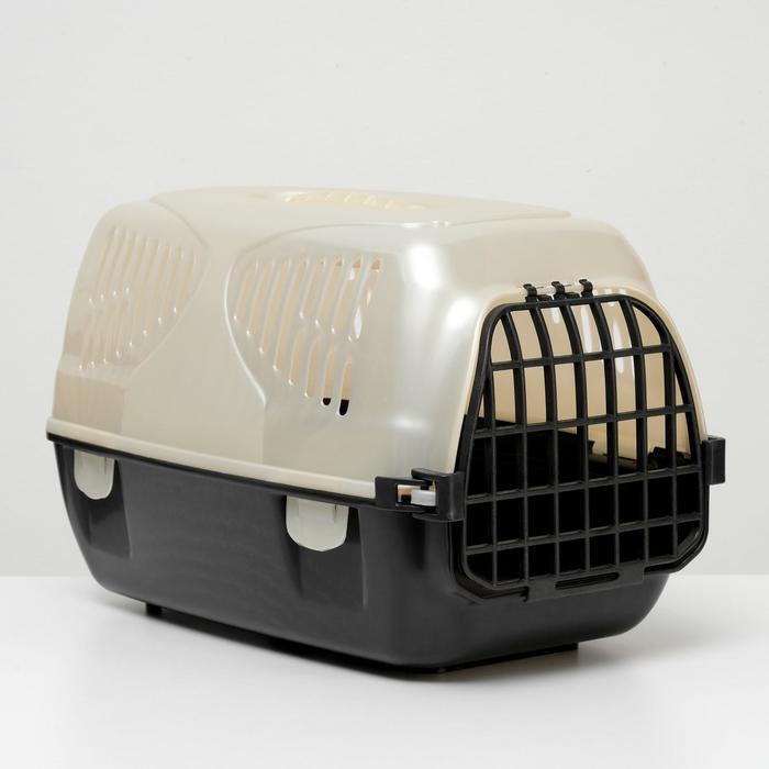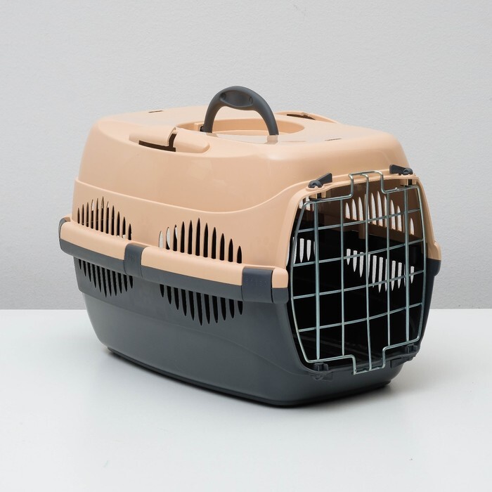 Переноска для животных до 9 кг , металлическая дверь, 43 х 29 х 27,5 см, бежево-серая код 777