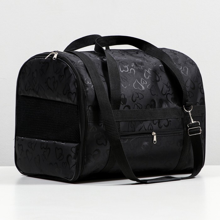 Сумка-переноска для животных "Сердца" №2, 45х30х35 см, черная