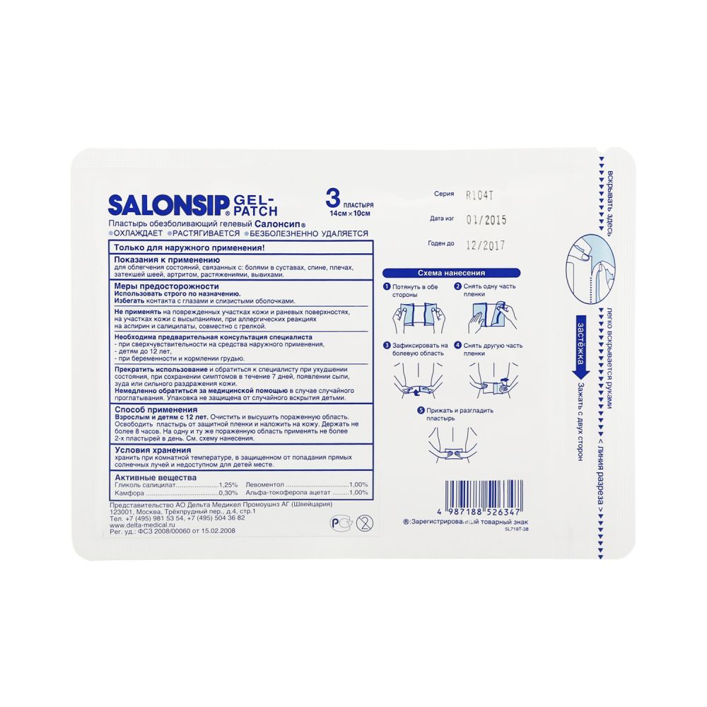 Салонсип пластырь гелевый обезболивающий 14х10см №3