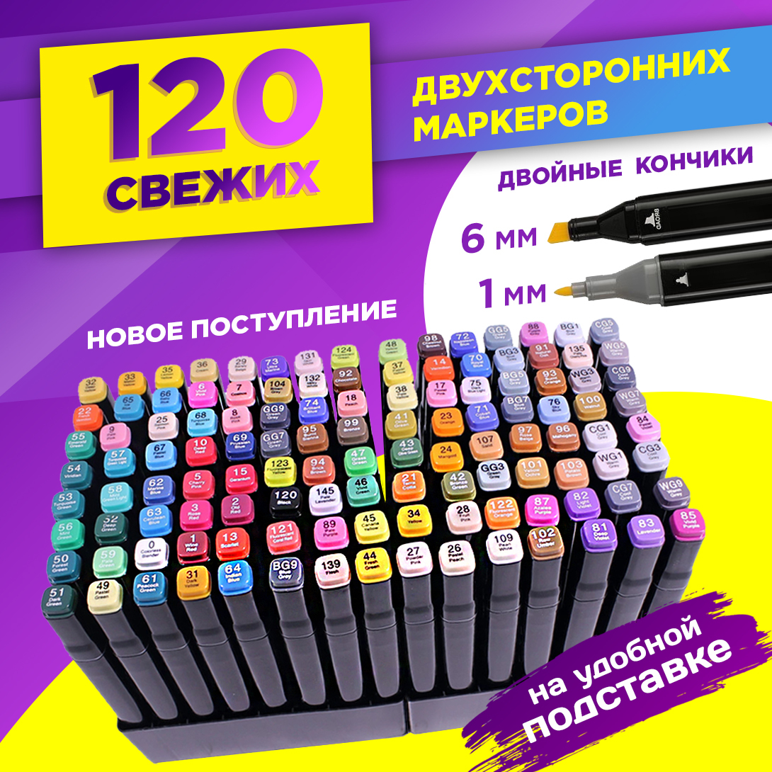 Набор профессиональных двухсторонних маркеров для скетчинга 120 цветов в чехле