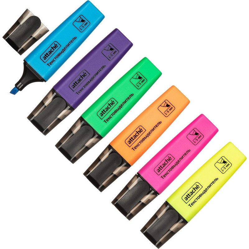 Attache / Набор маркеров-выделителей текста / Набор текстовыделителей 1-5 мм, 6 цветов