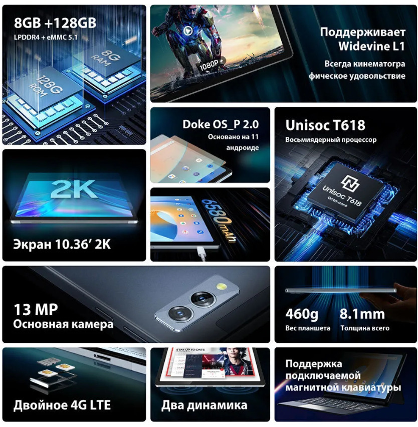 Детский планшет Teclast M40 pro, 10.1", 128GB, черно-серый