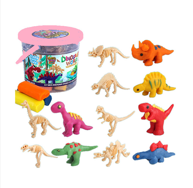 Пластилин воздушный в ведерке со скелетами динозавров мягкий 16 шт 8 цветов 6 скелетов